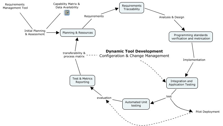 This Concept Map, created with IHMC CmapTools, has information related to: ICTBIOMED, Integration and Application Testing test Pilot Deployment, Programming standards verification and metrication Implementation Integration and Application Testing, Test & Metrics Reporting transferability & process matrix Planning & Resources, Requirements Traceability Analysis & Design Programming standards verification and metrication, Pilot Deployment evaluation Test & Metrics Reporting, Requirements Management Tool Initial Planning & Assessment Planning & Resources, Test & Metrics Reporting transferability & process matrix Integration and Application Testing, Capability Matrix & Data Availability Initial Planning & Assessment Planning & Resources, Automated Unit testing evaluation Test & Metrics Reporting, Planning & Resources Requirements Requirements Traceability, Integration and Application Testing test Automated Unit testing