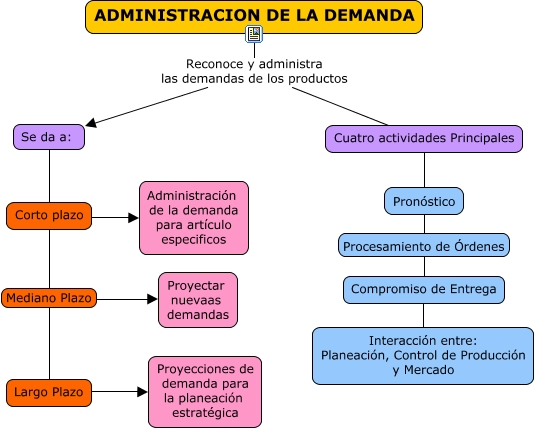 Este Cmap, tiene información relacionada con: ADMINISTRACION DE LA DEMANDA, ADMINISTRACION DE LA DEMANDA Reconoce y administra las demandas de los productos Cuatro actividades Principales, Largo Plazo ???? Proyecciones de demanda para la planeación estratégica, ADMINISTRACION DE LA DEMANDA Reconoce y administra las demandas de los productos Se da a:, Corto plazo ???? Administración de la demanda para artículo especificos, Corto plazo Mediano Plazo Proyectar nuevaas demandas, Se da a: ???? Corto plazo, Pronóstico Procesamiento de Órdenes Compromiso de Entrega, Compromiso de Entrega ???? Interacción entre: Planeación, Control de Producción y Mercado, Cuatro actividades Principales ???? Pronóstico, Corto plazo Mediano Plazo Largo Plazo