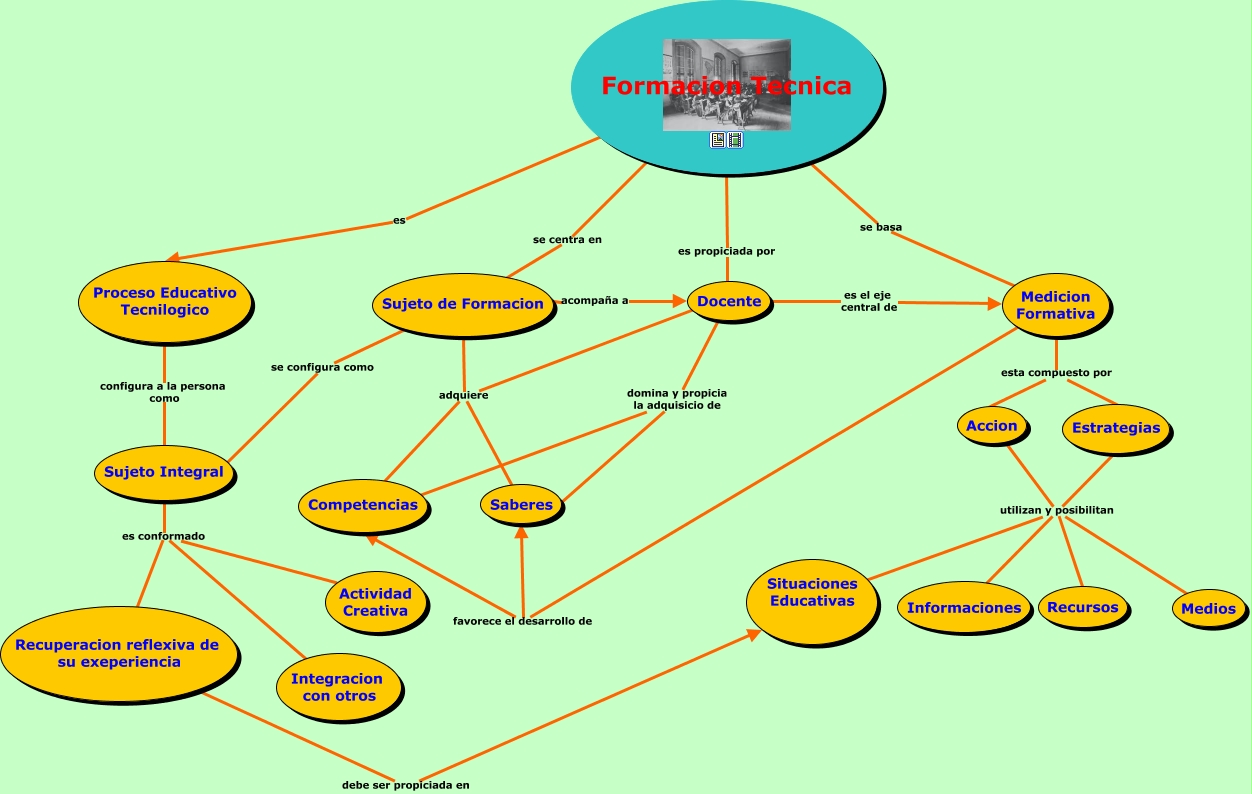 Este Cmap, tiene información relacionada con: formacion tecnica 3, Formacion Tecnica es Proceso Educativo Tecnilogico, Formacion Tecnica se basa Medicion Formativa, Recuperacion reflexiva de su exeperiencia debe ser propiciada en Situaciones Educativas, Estrategias utilizan y posibilitan Informaciones, Medicion Formativa favorece el desarrollo de Competencias, Sujeto de Formacion acompaña a Docente, Docente adquiere Saberes, Sujeto Integral es conformado Recuperacion reflexiva de su exeperiencia, Medicion Formativa esta compuesto por Estrategias, Sujeto Integral es conformado Actividad Creativa, Sujeto de Formacion adquiere Competencias, Accion utilizan y posibilitan Recursos, Estrategias utilizan y posibilitan Recursos, Accion utilizan y posibilitan Medios, Medicion Formativa favorece el desarrollo de Saberes, Estrategias utilizan y posibilitan Medios, Sujeto de Formacion se configura como Sujeto Integral, Medicion Formativa esta compuesto por Accion, Formacion Tecnica se centra en Sujeto de Formacion, Accion utilizan y posibilitan Informaciones