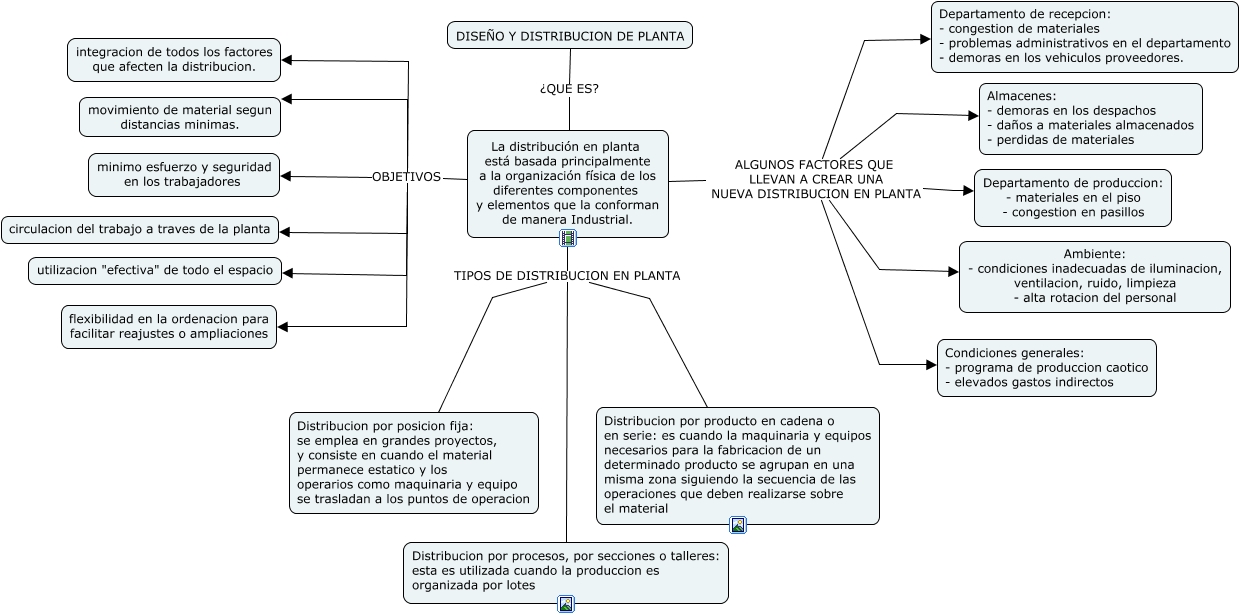 Este Cmap, tiene información relacionada con: DISEÑO Y DISTRIBUCION DE PLANTA, La distribución en planta está basada principalmente a la organización física de los diferentes componentes y elementos que la conforman de manera Industrial. ALGUNOS FACTORES QUE LLEVAN A CREAR UNA NUEVA DISTRIBUCION EN PLANTA Departamento de produccion: - materiales en el piso - congestion en pasillos, La distribución en planta está basada principalmente a la organización física de los diferentes componentes y elementos que la conforman de manera Industrial. ALGUNOS FACTORES QUE LLEVAN A CREAR UNA NUEVA DISTRIBUCION EN PLANTA Condiciones generales: - programa de produccion caotico - elevados gastos indirectos, La distribución en planta está basada principalmente a la organización física de los diferentes componentes y elementos que la conforman de manera Industrial. OBJETIVOS circulacion del trabajo a traves de la planta, La distribución en planta está basada principalmente a la organización física de los diferentes componentes y elementos que la conforman de manera Industrial. ALGUNOS FACTORES QUE LLEVAN A CREAR UNA NUEVA DISTRIBUCION EN PLANTA Almacenes: - demoras en los despachos - daños a materiales almacenados - perdidas de materiales, La distribución en planta está basada principalmente a la organización física de los diferentes componentes y elementos que la conforman de manera Industrial. OBJETIVOS flexibilidad en la ordenacion para facilitar reajustes o ampliaciones, DISEÑO Y DISTRIBUCION DE PLANTA ¿QUE ES? La distribución en planta está basada principalmente a la organización física de los diferentes componentes y elementos que la conforman de manera Industrial., La distribución en planta está basada principalmente a la organización física de los diferentes componentes y elementos que la conforman de manera Industrial. OBJETIVOS minimo esfuerzo y seguridad en los trabajadores, La distribución en planta está basada principalmente a la organización física de los diferentes componentes y elementos que la conforman de manera Industrial. ALGUNOS FACTORES QUE LLEVAN A CREAR UNA NUEVA DISTRIBUCION EN PLANTA Ambiente: - condiciones inadecuadas de iluminacion, ventilacion, ruido, limpieza - alta rotacion del personal, La distribución en planta está basada principalmente a la organización física de los diferentes componentes y elementos que la conforman de manera Industrial. TIPOS DE DISTRIBUCION EN PLANTA Distribucion por posicion fija: se emplea en grandes proyectos, y consiste en cuando el material permanece estatico y los operarios como maquinaria y equipo se trasladan a los puntos de operacion, La distribución en planta está basada principalmente a la organización física de los diferentes componentes y elementos que la conforman de manera Industrial. TIPOS DE DISTRIBUCION EN PLANTA Distribucion por producto en cadena o en serie: es cuando la maquinaria y equipos necesarios para la fabricacion de un determinado producto se agrupan en una misma zona siguiendo la secuencia de las operaciones que deben realizarse sobre el material, La distribución en planta está basada principalmente a la organización física de los diferentes componentes y elementos que la conforman de manera Industrial. ALGUNOS FACTORES QUE LLEVAN A CREAR UNA NUEVA DISTRIBUCION EN PLANTA Departamento de recepcion: - congestion de materiales - problemas administrativos en el departamento - demoras en los vehiculos proveedores., La distribución en planta está basada principalmente a la organización física de los diferentes componentes y elementos que la conforman de manera Industrial. OBJETIVOS movimiento de material segun distancias minimas., La distribución en planta está basada principalmente a la organización física de los diferentes componentes y elementos que la conforman de manera Industrial. OBJETIVOS utilizacion "efectiva" de todo el espacio, La distribución en planta está basada principalmente a la organización física de los diferentes componentes y elementos que la conforman de manera Industrial. TIPOS DE DISTRIBUCION EN PLANTA Distribucion por procesos, por secciones o talleres: esta es utilizada cuando la produccion es organizada por lotes, La distribución en planta está basada principalmente a la organización física de los diferentes componentes y elementos que la conforman de manera Industrial. OBJETIVOS integracion de todos los factores que afecten la distribucion.