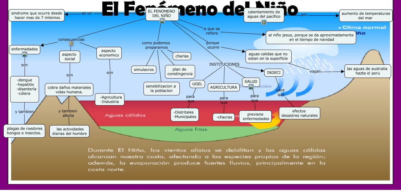 Este Cmap, tiene información relacionada con: fenomeno del niño, EL FENOMENO DEL NIÑO consecuencias aspecto social, EL FENOMENO DEL NIÑO porque ocurre aguas calidas que no estan en la superficie, cobra daños materiales vidas humana. y tambien afecta las actividades diarias del hombre, aguas calidas que no estan en la superficie viajan las aguas de australia hazta el peru, -dengue -hepatitis -disentería -cólera y tambien plagas de roedores hongos e insectos., EL FENOMENO DEL NIÑO como podemos prepararnos charlas, EL FENOMENO DEL NIÑO sucede calentamiento de aguas del pacifico, aspecto social son cobra daños materiales vidas humana., EL FENOMENO DEL NIÑO consecuencias enfermedades, EL FENOMENO DEL NIÑO consecuencias aspecto economico, EL FENOMENO DEL NIÑO como podemos prepararnos plan de constingencia, EL FENOMENO DEL NIÑO INSTITUCIONES UGEL, EL FENOMENO DEL NIÑO INSTITUCIONES SALUD, SALUD para que previene enfermedades, calentamiento de aguas del pacifico por aumento de temperaturas del mar, UGEL para que -Distritales -Municipales, EL FENOMENO DEL NIÑO es un sindrome que ocurre desde hacer mas de 7 milenios, EL FENOMENO DEL NIÑO INSTITUCIONES AGRICULTURA, AGRICULTURA para que -chacras, EL FENOMENO DEL NIÑO como podemos prepararnos sensibilizacion a la poblacion