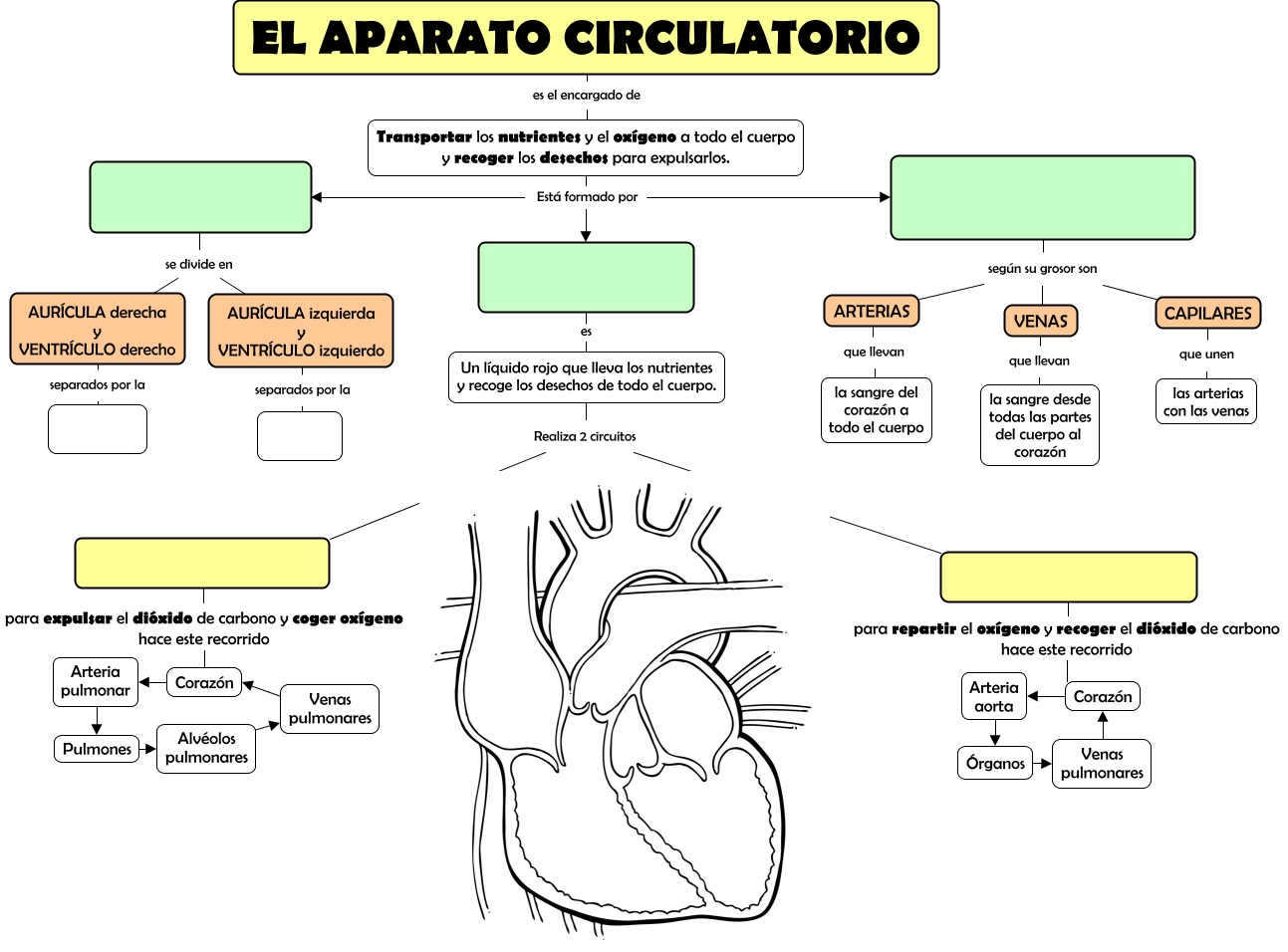 Este Cmap, tiene información relacionada con: AP. CIRCULATORIO INCOMPLETO, Alvéolos pulmonares ???? Venas pulmonares, CAPILARES que unen las arterias con las venas, EL CORAZÓN se divide en AUR�?CULA izquierda y VENTR�?CULO izquierdo, Transportar los nutrientes y el oxígeno a todo el cuerpo y recoger los desechos para expulsarlos. Está formado por LA SANGRE, CIRCULACIÓN MENOR para expulsar el dióxido de carbono y coger oxígeno hace este recorrido Corazón, Transportar los nutrientes y el oxígeno a todo el cuerpo y recoger los desechos para expulsarlos. Está formado por LOS VASOS SANGU�?NEOS, Arteria pulmonar ???? Pulmones, Transportar los nutrientes y el oxígeno a todo el cuerpo y recoger los desechos para expulsarlos. Está formado por EL CORAZÓN, EL CORAZÓN se divide en AUR�?CULA derecha y VENTR�?CULO derecho, LOS VASOS SANGU�?NEOS según su grosor son ARTERIAS, LA SANGRE es Un líquido rojo que lleva los nutrientes y recoge los desechos de todo el cuerpo., Venas pulmonares ???? Corazón, Arteria aorta ???? Órganos, Corazón a Arteria aorta, LOS VASOS SANGU�?NEOS según su grosor son VENAS, LOS VASOS SANGU�?NEOS según su grosor son CAPILARES, AUR�?CULA izquierda y VENTR�?CULO izquierdo separados por la V�?LVULA MITRAL, VENAS que llevan la sangre desde todas las partes del cuerpo al corazón, Un líquido rojo que lleva los nutrientes y recoge los desechos de todo el cuerpo. Realiza 2 circuitos CIRCULACIÓN MENOR, Pulmones ???? Alvéolos pulmonares