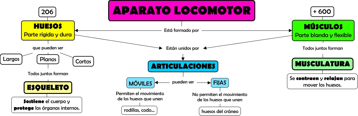 Este Cmap, tiene información relacionada con: APARATO LOCOMOTOR, HUESOS Parte rígida y dura que pueden ser Planos, FIJAS No permiten el movimiento de los huesos que unen huesos del cráneo, MÚSCULOS Parte blanda y flexible Todos juntos forman MUSCULATURA, HUESOS Parte rígida y dura Están unidos por ARTICULACIONES, Planos Todos juntos forman ESQUELETO, APARATO LOCOMOTOR Está formado por HUESOS Parte rígida y dura, MÚSCULOS Parte blanda y flexible ???? + 600, HUESOS Parte rígida y dura que pueden ser Largos, ARTICULACIONES pueden ser MÓVILES, MÓVILES Permiten el movimiento de los huesos que unen rodillas, codo..., HUESOS Parte rígida y dura ???? 206, MÚSCULOS Parte blanda y flexible Están unidos por ARTICULACIONES, HUESOS Parte rígida y dura que pueden ser Cortos, ARTICULACIONES pueden ser FIJAS, ESQUELETO ???? Sostiene el cuerpo y protege los órganos internos., MUSCULATURA ???? Se contraen y relajan para mover los huesos., APARATO LOCOMOTOR Está formado por MÚSCULOS Parte blanda y flexible