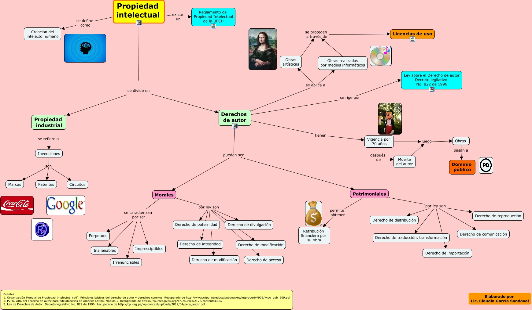 Este Cmap, tiene información relacionada con: Propiedad intelectual, Invenciones son Circuitos, Morales se caracterizan por ser Perpetuos, Patrimoniales permite obtener Retribución financiera por su obra, Patrimoniales por ley son Derecho de reproducción, Propiedad intelectual se divide en Propiedad industrial, Morales se caracterizan por ser Impresciptibles, Morales por ley son Derecho de modificación, Derechos de autor pueden ser Morales, Invenciones son Marcas, Obras artísticas se protegen a través de Licencias de uso, Morales por ley son Derecho de acceso, Obras realizadas por medios informáticos se protegen a través de Licencias de uso, Derechos de autor pueden ser Patrimoniales, Derechos de autor se aplica a Obras realizadas por medios informáticos, Patrimoniales por ley son Derecho de traducción, transformación, Derechos de autor tienen Vigencia por 70 años, Obras pasan a Dominio público, Patrimoniales por ley son Derecho de importación, Morales por ley son Derecho de paternidad, Morales por ley son Derecho de integridad