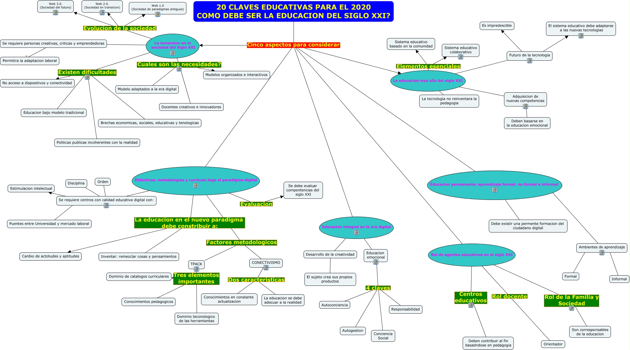 Este Cmap, tiene información relacionada con: 20 claves educativas para el 2020 - CRISTIAN NAVIA VASQUEZ, La educacion mas alla del siglo XXI La tecnologia no reinventara la pedagogia, La educacion mas alla del siglo XXI Elementos esenciales Sistema educativo basado en la comunidad, 20 CLAVES EDUCATIVAS PARA EL 2020 COMO DEBE SER LA EDUCACION DEL SIGLO XXI? Cinco aspectos para considerar La educacion mas alla del siglo XXI, 20 CLAVES EDUCATIVAS PARA EL 2020 COMO DEBE SER LA EDUCACION DEL SIGLO XXI? Cinco aspectos para considerar Educacion integral en la era digital, Se requiere centros con calidad educativa digital con: ???? Orden, La educacion mas alla del siglo XXI ???? Futuro de la tecnologia, La inmersion en la sociedad del Siglo XXI Existen dificultades Brechas economicas, sociales, educativas y tenologicas, Rol de agentes educativos en el siglo XXI Rol docente Orientador, Educacion emocional 4 claves Autoconciencia, Desarrollo de la creatividad ???? El sujeto crea sus propios productos, 20 CLAVES EDUCATIVAS PARA EL 2020 COMO DEBE SER LA EDUCACION DEL SIGLO XXI? Cinco aspectos para considerar Didacticas, metodologias y curriculo bajo el paradigma digital, Educacion emocional 4 claves Conciencia Social, Educacion permanente: aprendizaje formal, no formal e informal ???? Debe existir una permente formacion del ciudadano digital, Futuro de la tecnologia ???? Es impredescible, Se requiere centros con calidad educativa digital con: ???? Disciplina, La inmersion en la sociedad del Siglo XXI Existen dificultades Educacion bajo modelo tradicional, Futuro de la tecnologia ???? El sistema educativo debe adaptarse a las nuevas tecnologias, Educacion emocional 4 claves Responsabilidad, Didacticas, metodologias y curriculo bajo el paradigma digital Evaluacion Se debe evaluar compentencias del siglo XXI, La inmersion en la sociedad del Siglo XXI Evolucion de la sociedad Web 2.0. (Sociedad en transicion)