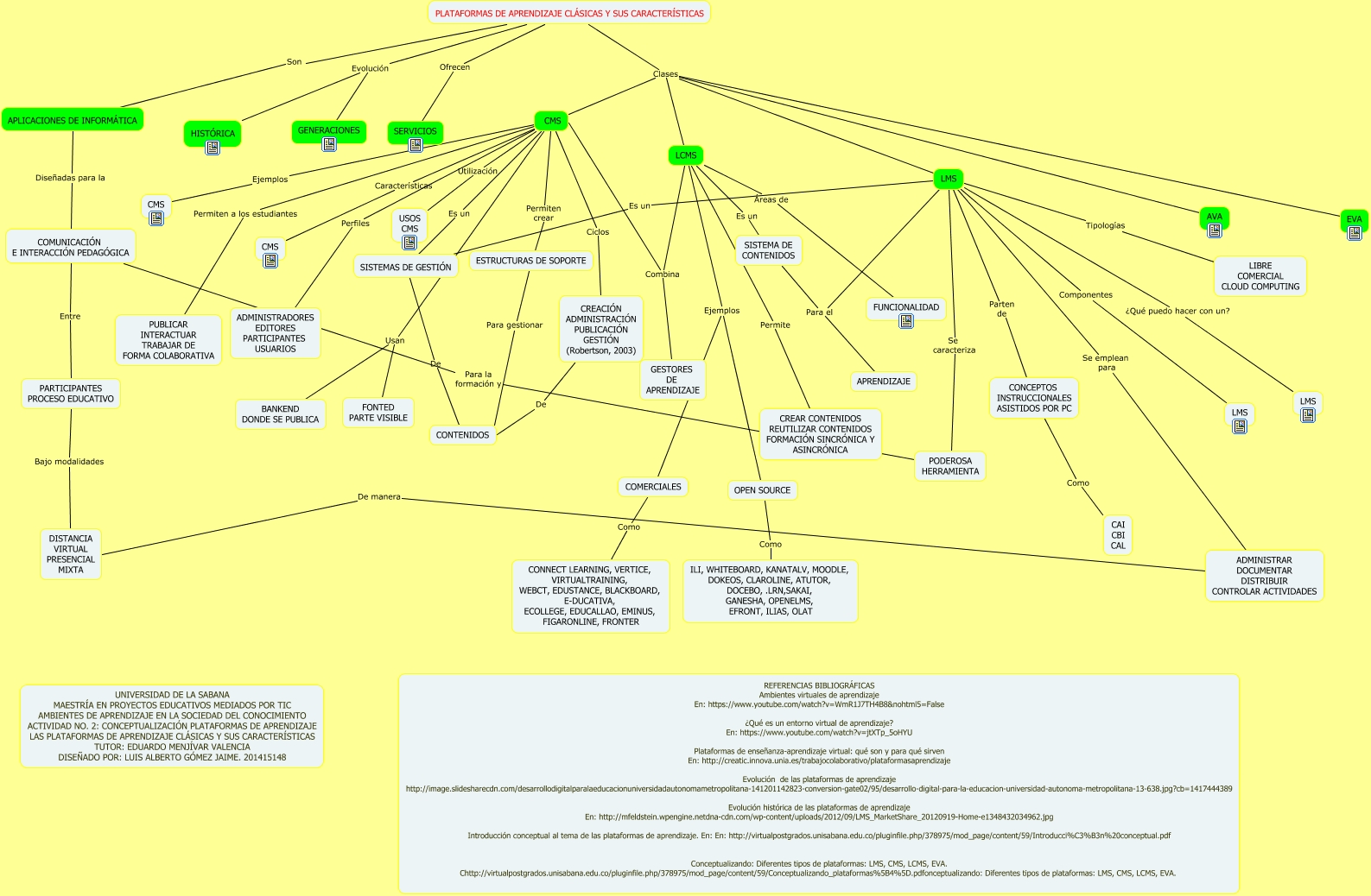 Este Cmap, tiene información relacionada con: PLATAFORMAS DE APRENDIZAJE CLÁSICAS Y SUS CARACTERÍSTICAS, CMS Permiten a los estudiantes PUBLICAR INTERACTUAR TRABAJAR DE FORMA COLABORATIVA, CMS Usan FONTED PARTE VISIBLE, LCMS Ejemplos COMERCIALES, PLATAFORMAS DE APRENDIZAJE CLÁSICAS Y SUS CARACTERÍSTICAS Clases EVA, CMS Permiten crear ESTRUCTURAS DE SOPORTE, CMS Es un SISTEMAS DE GESTIÓN, AVA Clases LCMS, PARTICIPANTES PROCESO EDUCATIVO Bajo modalidades DISTANCIA VIRTUAL PRESENCIAL MIXTA, LCMS Combina GESTORES DE APRENDIZAJE, PLATAFORMAS DE APRENDIZAJE CLÁSICAS Y SUS CARACTERÍSTICAS Son APLICACIONES DE INFORMÁTICA, OPEN SOURCE Como ILI, WHITEBOARD, KANATALV, MOODLE, DOKEOS, CLAROLINE, ATUTOR, DOCEBO, .LRN,SAKAI, GANESHA, OPENELMS, EFRONT, ILIAS, OLAT, LMS Para el APRENDIZAJE, LMS Se caracteriza PODEROSA HERRAMIENTA, CMS Ejemplos CMS, COMERCIALES Como CONNECT LEARNING, VERTICE, VIRTUALTRAINING, WEBCT, EDUSTANCE, BLACKBOARD, E-DUCATIVA, ECOLLEGE, EDUCALLAO, EMINUS, FIGARONLINE, FRONTER, LCMS Es un SISTEMA DE CONTENIDOS, CMS Utilización USOS CMS, LMS Parten de CONCEPTOS INSTRUCCIONALES ASISTIDOS POR PC, LMS Es un SISTEMAS DE GESTIÓN, PLATAFORMAS DE APRENDIZAJE CLÁSICAS Y SUS CARACTERÍSTICAS Clases CMS