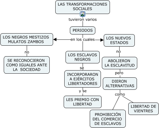 Este Cmap, tiene información relacionada con: LAS TRANSFORMACIONES SOCIALES, DIERON ALTERNATIVAS como LIBERTAD DE VIENTRES, LOS NEGROS MESTIZOS MULATOS ZAMBOS no SE RECONOCIERON COMO IGUALES ANTE LA SOCIEDAD, LOS NUEVOS ESTADOS no ABOLIERON LA ESCLAVITUD, PERIODOS en los cuales LOS NEGROS MESTIZOS MULATOS ZAMBOS, LOS ESCLAVOS NEGROS se INCORPORARON A EJÉRCITOS LIBERTADORES, LAS TRANSFORMACIONES SOCIALES tuvieron varios PERIODOS, INCORPORARON A EJÉRCITOS LIBERTADORES y se LES PREMIO CON LIBERTAD, DIERON ALTERNATIVAS como PROHIBICIÓN DEL COMERCIO DE ESCLAVOS, PERIODOS en los cuales LOS NUEVOS ESTADOS, ABOLIERON LA ESCLAVITUD pero DIERON ALTERNATIVAS, PERIODOS en los cuales LOS ESCLAVOS NEGROS