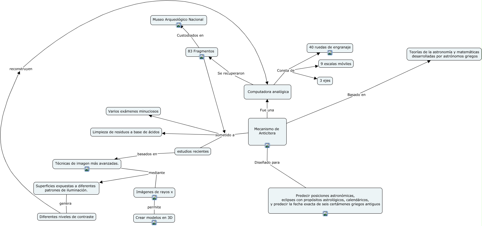 Este Cmap, tiene información relacionada con: Mecanismo Anticitera revisado final, 83 Fragmentos sometido a estudios recientes, Mecanismo de Anticitera Diseñado para Predecir posiciones astronómicas, eclipses con propósitos astrológicos, calendáricos, y predecir la fecha exacta de seis certámenes griegos antiguos, Mecanismo de Anticitera sometido a Varios exámenes minuciosos, 83 Fragmentos Custodiados en Museo Arqueológico Nacional, Diferentes niveles de contraste reconstruyen Computadora analógica, Superficies expuestas a diferentes patrones de iluminación. genera Diferentes niveles de contraste, Imágenes de rayos x permite Crear modelos en 3D, Técnicas de imagen más avanzadas. mediante Imágenes de rayos x, estudios recientes basados en Técnicas de imagen más avanzadas., Computadora analógica Consta de 40 ruedas de engranaje, 83 Fragmentos sometido a Varios exámenes minuciosos, Técnicas de imagen más avanzadas. mediante Superficies expuestas a diferentes patrones de iluminación., Mecanismo de Anticitera sometido a estudios recientes, Mecanismo de Anticitera Fue una Computadora analógica, Computadora analógica Consta de 3 ejes, Mecanismo de Anticitera Basado en Teorías de la astronomía y matemáticas desarrolladas por astrónomos griegos, 83 Fragmentos sometido a Limpieza de residuos a base de ácidos, Computadora analógica Se recuperaron 83 Fragmentos, Mecanismo de Anticitera sometido a Limpieza de residuos a base de ácidos, Computadora analógica Consta de 9 escalas móviles