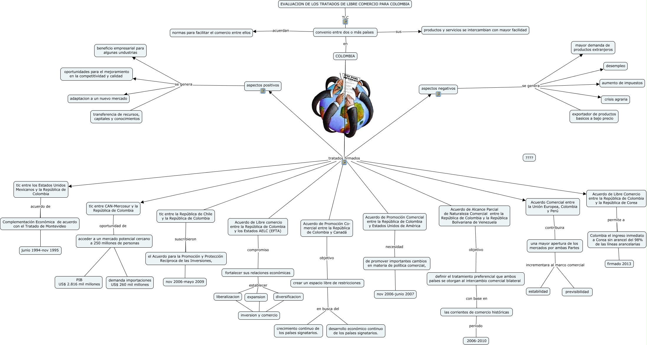 Este Cmap, tiene información relacionada con: TRATADO DE LIBRE COMERCIO, fortalecer sus relaciones económicas establecer diversificacion, Acuerdo de Libre Comercio entre la República de Colombia y la República de Corea permite a Colombia el ingreso inmediato a Corea sin arancel del 98% de las líneas arancelarias, definir el tratamiento preferencial que ambos países se otorgan al intercambio comercial bilateral con base en las corrientes de comercio históricas, convenio entre dos o más países en COLOMBIA, COLOMBIA tratados firmados Acuerdo de Alcance Parcial de Naturaleza Comercial entre la República de Colombia y la República Bolivariana de Venezuela, COLOMBIA tratados firmados tlc entre los Estados Unidos Mexicanos y la República de Colombia, COLOMBIA tratados firmados tlc entre CAN-Mercosur y la República de Colombia, COLOMBIA tratados firmados aspectos positivos, aspectos negativos se genera crisis agraria, tlc entre los Estados Unidos Mexicanos y la República de Colombia acuerdo de Complementación Económica de acuerdo con el Tratado de Montevideo, una mayor apertura de los mercados por ambas Partes incrementara al marco comercial estabilidad, crear un espacio libre de restricciones en busca del crecimiento continuo de los países signatarios., tlc entre los Estados Unidos Mexicanos y la República de Colombia acuerdo de junio 1994-nov 1995, Acuerdo de Libre comercio entre la República de Colombia y los Estados AELC (EFTA) compromiso fortalecer sus relaciones económicas, convenio entre dos o más países sus productos y servicios se intercambian con mayor facilidad, Acuerdo de Alcance Parcial de Naturaleza Comercial entre la República de Colombia y la República Bolivariana de Venezuela objetivo definir el tratamiento preferencial que ambos países se otorgan al intercambio comercial bilateral, COLOMBIA tratados firmados tlc entre la República de Chile y la República de Colombia, fortalecer sus relaciones económicas establecer expansion, aspectos negativos se genera exportador de productos basicos a bajo precio, EVALUACION DE LOS TRATADOS DE LIBRE COMERCIO PARA COLOMBIA TLC convenio entre dos o más países