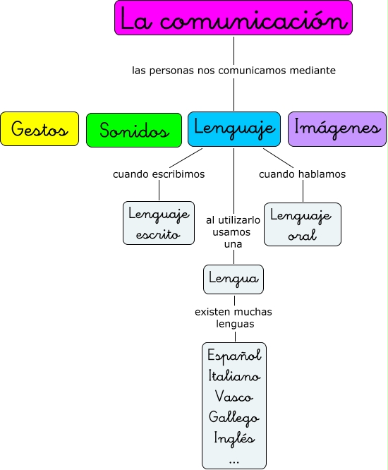 Este Cmap, tiene información relacionada con: Lengua_La comunicación, La comunicación las personas nos comunicamos mediante Lenguaje, Lenguaje cuando hablamos Lenguaje oral, Lenguaje al utilizarlo usamos una Lengua, Lenguaje cuando escribimos Lenguaje escrito, Lengua existen muchas lenguas Español Italiano Vasco Gallego Inglés ...