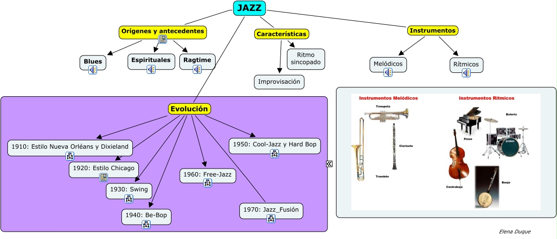 Este Cmap, tiene información relacionada con: jazz.cmap, JAZZ Evolución 1930: Swing, JAZZ Orígenes y antecedentes Ragtime, JAZZ Orígenes y antecedentes Espirituales, JAZZ Evolución 1910: Estilo Nueva Orléans y Dixieland, JAZZ Evolución 1950: Cool-Jazz y Hard Bop, JAZZ Evolución 1920: Estilo Chicago, JAZZ Evolución 1960: Free-Jazz, JAZZ Instrumentos Melódicos, JAZZ Orígenes y antecedentes Blues, JAZZ Evolución 1940: Be-Bop, JAZZ Características Ritmo sincopado, JAZZ Características Improvisación, JAZZ Evolución 1970: Jazz_Fusión, JAZZ Instrumentos Rítmicos