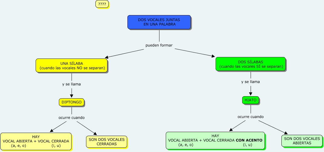 Este Cmap, tiene información relacionada con: TEMA 5 DIPTONGO-HIATO, DOS S�?LABAS (cuando las vocales S�? se separan) y se llama HIATO, DOS VOCALES JUNTAS EN UNA PALABRA pueden formar UNA S�?LABA (cuando las vocales NO se separan), HIATO ocurre cuando SON DOS VOCALES ABIERTAS, UNA S�?LABA (cuando las vocales NO se separan) y se llama DIPTONGO, DIPTONGO ocurre cuando SON DOS VOCALES CERRADAS, HIATO ocurre cuando HAY VOCAL ABIERTA + VOCAL CERRADA CON ACENTO (a, e, o) (i, u), DIPTONGO ocurre cuando HAY VOCAL ABIERTA + VOCAL CERRADA (a, e, o) (i, u), DOS VOCALES JUNTAS EN UNA PALABRA pueden formar DOS S�?LABAS (cuando las vocales S�? se separan)