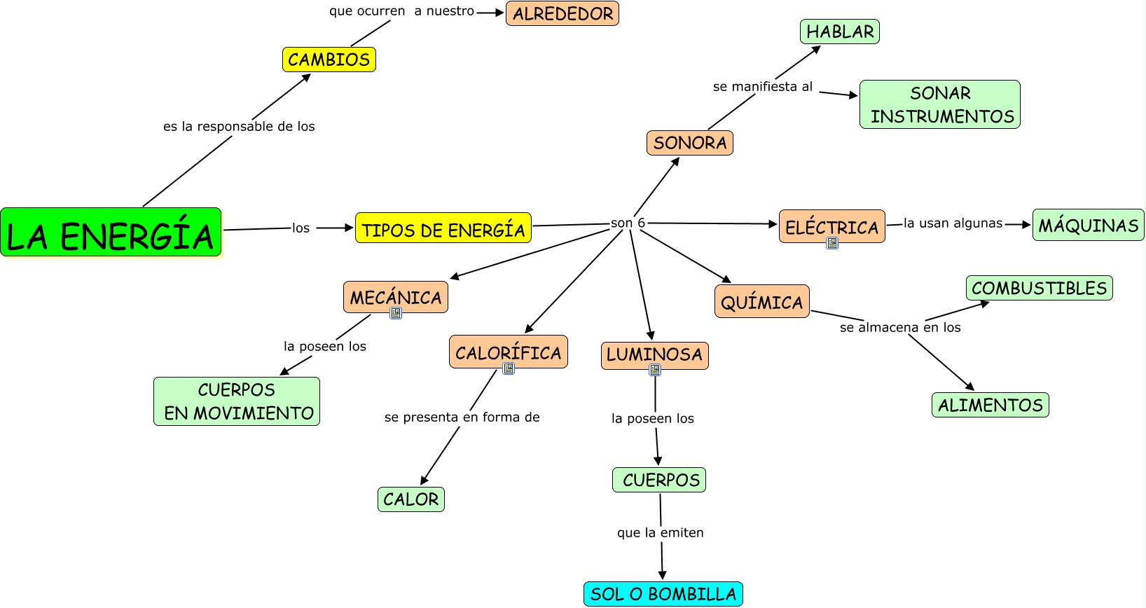 Este Cmap, tiene información relacionada con: LA ENERG�?A, TIPOS DE ENERG�?A son 6 SONORA, QU�?MICA se almacena en los COMBUSTIBLES, LUMINOSA la poseen los CUERPOS, LA ENERG�?A es la responsable de los CAMBIOS, LA ENERG�?A los TIPOS DE ENERG�?A, CAMBIOS que ocurren a nuestro ALREDEDOR, QU�?MICA se almacena en los ALIMENTOS, TIPOS DE ENERG�?A son 6 QU�?MICA, MEC�?NICA la poseen los CUERPOS EN MOVIMIENTO, TIPOS DE ENERG�?A son 6 ELÉCTRICA, CALOR�?FICA se presenta en forma de CALOR, TIPOS DE ENERG�?A son 6 LUMINOSA, SONORA se manifiesta al HABLAR, TIPOS DE ENERG�?A son 6 CALOR�?FICA, ELÉCTRICA la usan algunas M�?QUINAS, SONORA se manifiesta al SONAR INSTRUMENTOS, CUERPOS que la emiten SOL O BOMBILLA, TIPOS DE ENERG�?A son 6 MEC�?NICA