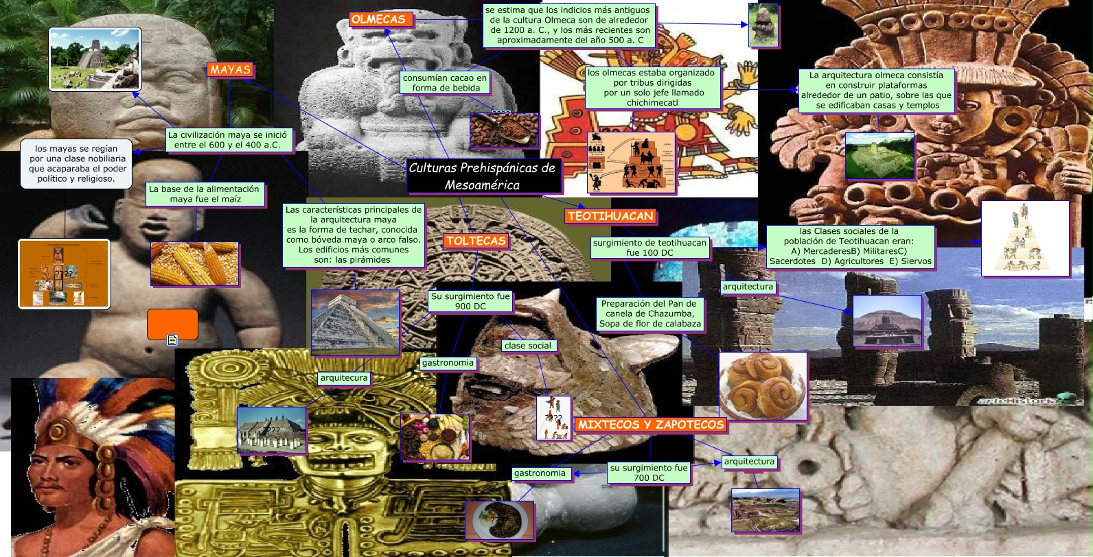 Este Cmap, tiene información relacionada con: cultura mesoamericana 2, gastronomia ???? ????, MIXTECOS Y ZAPOTECOS ???? arquitectura, las Clases sociales de la población de Teotihuacan eran: A) MercaderesB) MilitaresC) Sacerdotes D) Agricultores E) Siervos ????, consumían cacao en forma de bebida ???? ????, La civilización maya se inició entre el 600 y el 400 a.C. ???? Las características principales de la arquitectura maya es la forma de techar, conocida como bóveda maya o arco falso. Los edificios más comunes son: las pirámides, La civilización maya se inició entre el 600 y el 400 a.C. ???? los mayas se regían por una clase nobiliaria que acaparaba el poder político y religioso., Culturas Prehispánicas de Mesoamérica ???? MAYAS, La civilización maya se inició entre el 600 y el 400 a.C. ???? La base de la alimentación maya fue el maíz, surgimiento de teotihuacan fue 100 DC ???? Preparación del Pan de canela de Chazumba, Sopa de flor de calabaza, arquitecura ???? ????, Su surgimiento fue 900 DC ???? clase social, surgimiento de teotihuacan fue 100 DC ???? las Clases sociales de la población de Teotihuacan eran: A) MercaderesB) MilitaresC) Sacerdotes D) Agricultores E) Siervos, Las características principales de la arquitectura maya es la forma de techar, conocida como bóveda maya o arco falso. Los edificios más comunes son: las pirámides ????, arquitectura ????, Culturas Prehispánicas de Mesoamérica ???? TOLTECAS, Su surgimiento fue 900 DC ???? gastronomia, La civilización maya se inició entre el 600 y el 400 a.C. ????, ???? gastronomia, arquitectura ????, MAYAS ???? La civilización maya se inició entre el 600 y el 400 a.C.