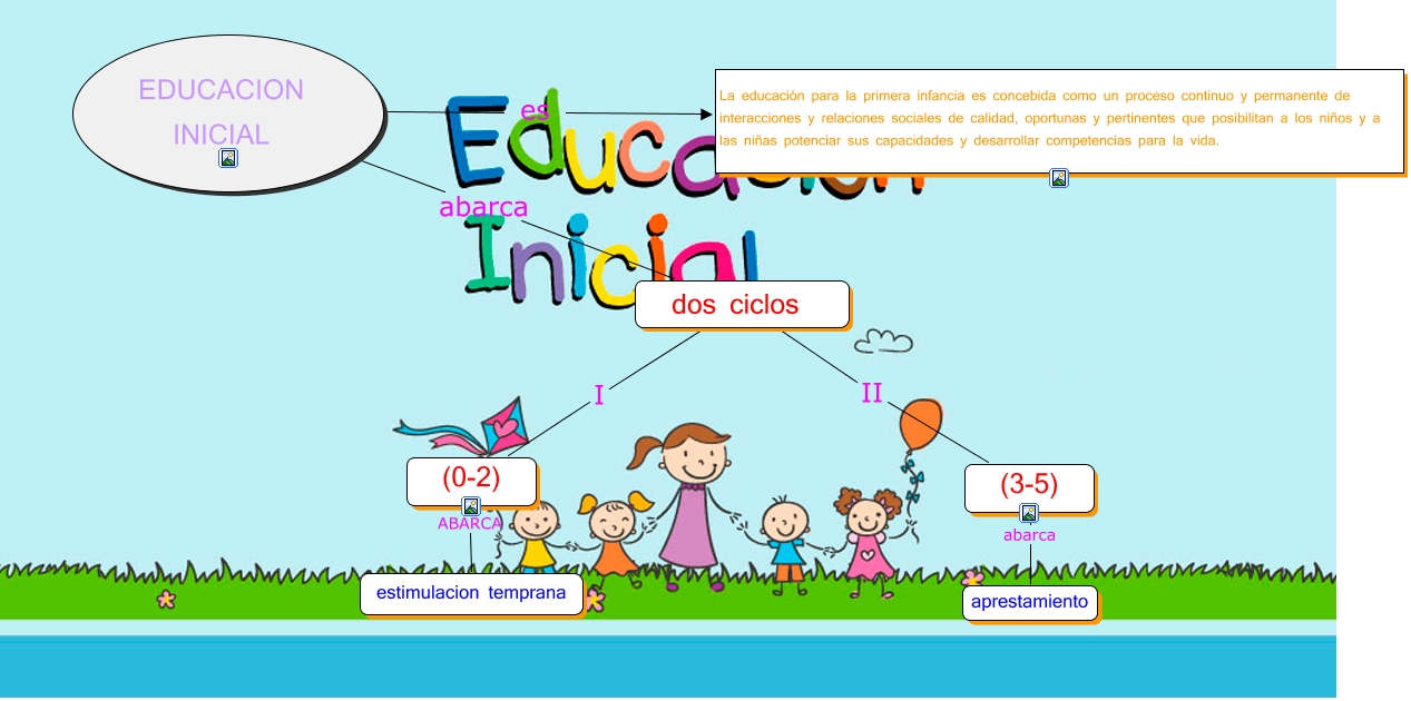Este Cmap, tiene información relacionada con: EDUCACION INICIAL.cmap, EDUCACION INICIAL abarca dos ciclos, EDUCACION INICIAL es La educación para la primera infancia es concebida como un proceso continuo y permanente de interacciones y relaciones sociales de calidad, oportunas y pertinentes que posibilitan a los niños y a las niñas potenciar sus capacidades y desarrollar competencias para la vida., dos ciclos II (3-5), dos ciclos I (0-2), (3-5) abarca aprestamiento, (0-2) ABARCA estimulacion temprana