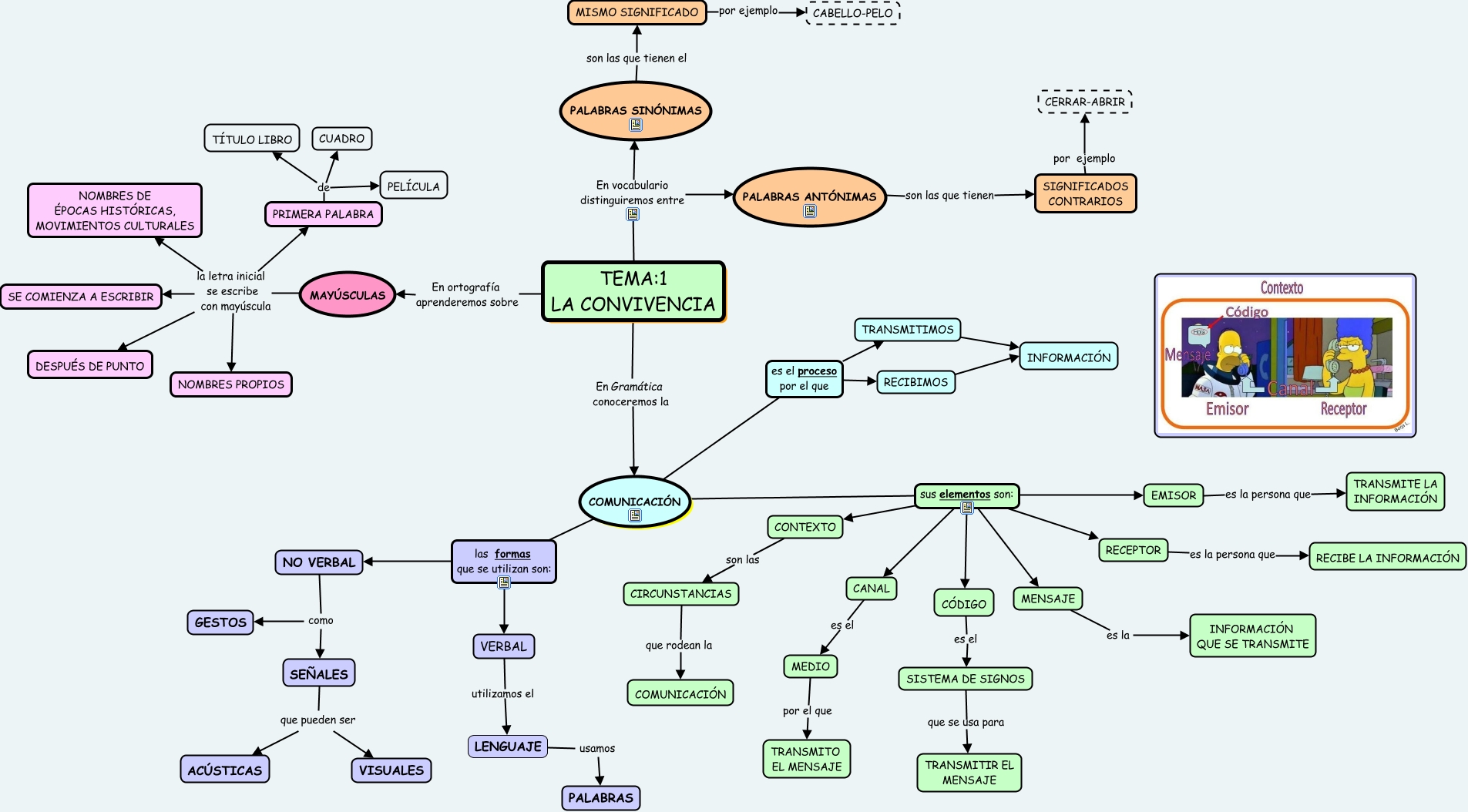 Este Cmap, tiene información relacionada con: TEMA 1 LENGUA 5º PRIMARIA, SISTEMA DE SIGNOS que se usa para TRANSMITIR EL MENSAJE, SEÑALES que pueden ser ACÚSTICAS, MENSAJE es la INFORMACIÓN QUE SE TRANSMITE, SEÑALES que pueden ser VISUALES, COMUNICACIÓN sus elementos son: MENSAJE, TEMA:1 LA CONVIVENCIA En vocabulario distinguiremos entre PALABRAS ANTÓNIMAS, MAYÚSCULAS la letra inicial se escribe con mayúscula SE COMIENZA A ESCRIBIR, VERBAL utilizamos el LENGUAJE, CONTEXTO son las CIRCUNSTANCIAS, MISMO SIGNIFICADO por ejemplo CABELLO-PELO, COMUNICACIÓN es el proceso por el que RECIBIMOS, TRANSMITIMOS ???? INFORMACIÓN, CANAL es el MEDIO, TEMA:1 LA CONVIVENCIA En Gramática conoceremos la COMUNICACIÓN, COMUNICACIÓN sus elementos son: RECEPTOR, COMUNICACIÓN sus elementos son: CÓDIGO, CÓDIGO es el SISTEMA DE SIGNOS, MAYÚSCULAS la letra inicial se escribe con mayúscula DESPUÉS DE PUNTO, RECEPTOR es la persona que RECIBE LA INFORMACIÓN, MAYÚSCULAS la letra inicial se escribe con mayúscula NOMBRES DE ÉPOCAS HISTÓRICAS, MOVIMIENTOS CULTURALES