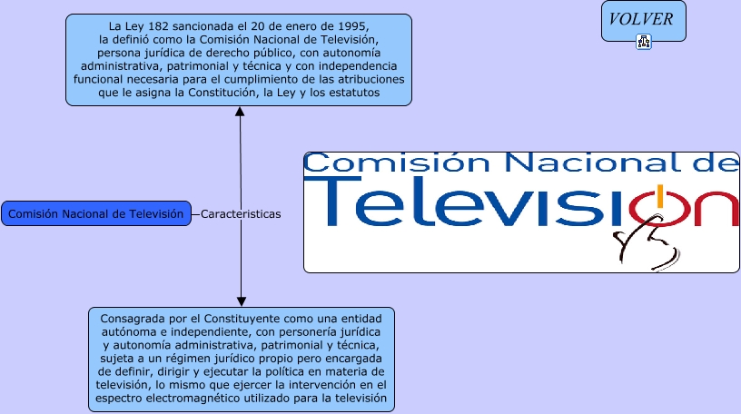 Este Cmap, tiene información relacionada con: Comision Nacional De Television, Comisión Nacional de Televisión Caracteristicas La Ley 182 sancionada el 20 de enero de 1995, la definió como la Comisión Nacional de Televisión, persona jurídica de derecho público, con autonomía administrativa, patrimonial y técnica y con independencia funcional necesaria para el cumplimiento de las atribuciones que le asigna la Constitución, la Ley y los estatutos, Comisión Nacional de Televisión Caracteristicas Consagrada por el Constituyente como una entidad autónoma e independiente, con personería jurídica y autonomía administrativa, patrimonial y técnica, sujeta a un régimen jurídico propio pero encargada de definir, dirigir y ejecutar la política en materia de televisión, lo mismo que ejercer la intervención en el espectro electromagnético utilizado para la televisión