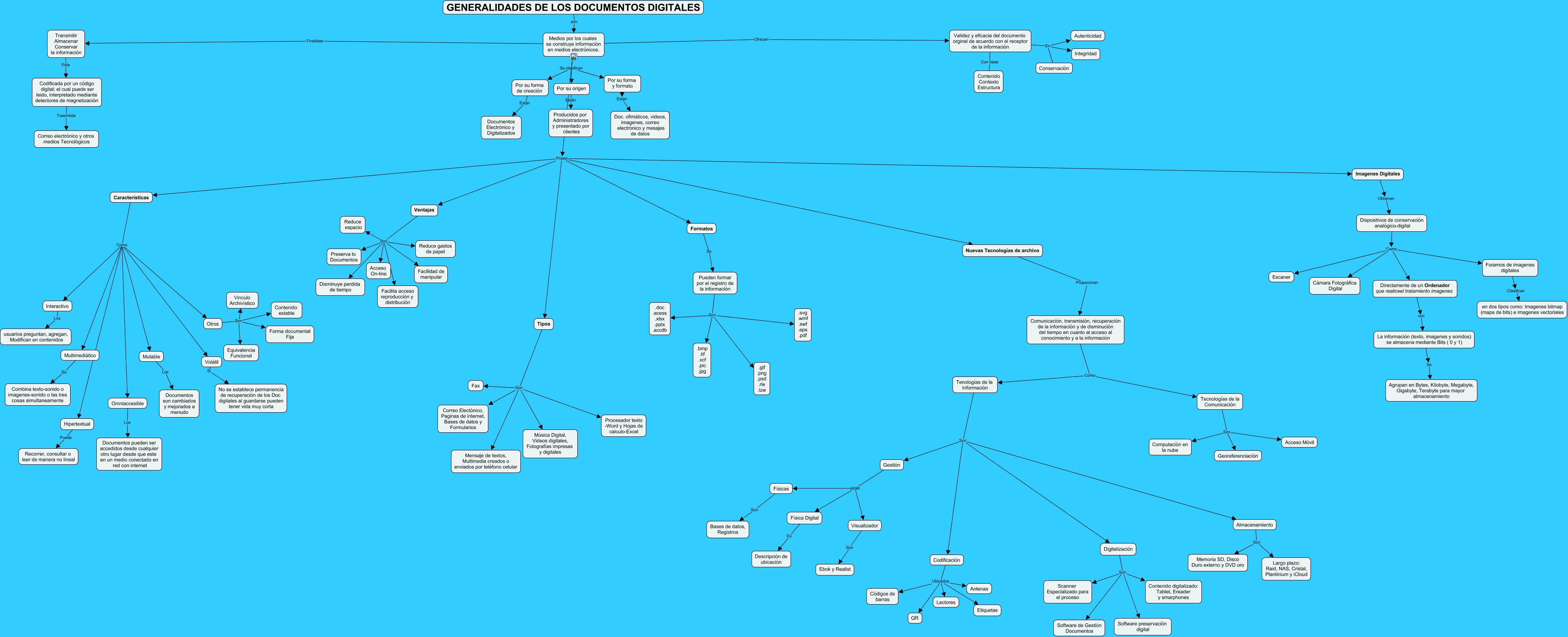 Este Cmap, tiene información relacionada con: Generalidades de los Documentos Digitales, Codificación Ubicados Etiquetas, Medios por los cuales se construye información en medios electrónicos. Ofrecen Validez y eficacia del documento orginal de acuerdo con el receptor de la información, Por su forma de creación Están Documentos Electrónico y Digitalizados, Ventajas Son Facilidad de manipular, Digitalización Son Software preservación digital, Dispositivos de conservación analógico-digital Como Escaner, Características Como Mutable, Características Como Interactivo, Características Como Omniaccesible, Medios por los cuales se construye información en medios electrónicos. Se clasifican Por su origen, Tenologías de la Información Son Almacenamiento, Volátil Si No se establece permanencia de recuperación de los Doc digitales al guardarse pueden tener vida muy corta, Mutable Los Documentos son cambiados y mejorados a menudo, Omniaccesible Los Documentos pueden ser accedidos desde cualquier otro lugar desde que este en un medio conectado en red con internet, Otros Son Vinculo Archivístico, Ventajas Son Reduce gastos de papel, GENERALIDADES DE LOS DOCUMENTOS DIGITALES son Medios por los cuales se construye información en medios electrónicos., Comunicación, transmisión, recuperación de la información y de disminución del tiempo en cuanto al acceso al conocimiento y a la información Como Tecnologías de la Comunicación, Otros Son Equivalencia Funcional, Medios por los cuales se construye información en medios electrónicos. Finalidad Transmitir Almacenar Conservar la información