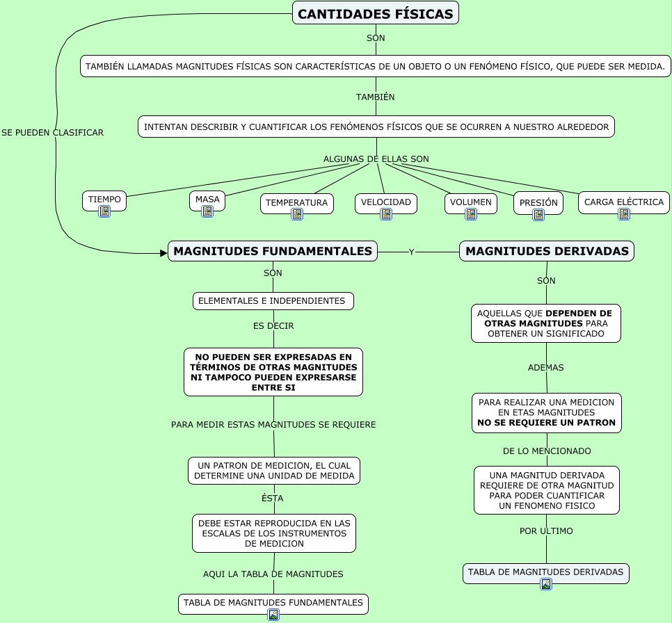 Este Cmap, tiene información relacionada con: MAPA CONCEPTUAL CANTIDADES FISICAS, CANTIDADES FÍSICAS SON TAMBIÉN LLAMADAS MAGNITUDES FÍSICAS SON CARACTERÍSTICAS DE UN OBJETO O UN FENÓMENO FÍSICO, QUE PUEDE SER MEDIDA., UN PATRON DE MEDICION, EL CUAL DETERMINE UNA UNIDAD DE MEDIDA ÉSTA DEBE ESTAR REPRODUCIDA EN LAS ESCALAS DE LOS INSTRUMENTOS DE MEDICION, INTENTAN DESCRIBIR Y CUANTIFICAR LOS FENÓMENOS FÍSICOS QUE SE OCURREN A NUESTRO ALREDEDOR ALGUNAS DE ELLAS SON MASA, TAMBIÉN LLAMADAS MAGNITUDES FÍSICAS SON CARACTERÍSTICAS DE UN OBJETO O UN FENÓMENO FÍSICO, QUE PUEDE SER MEDIDA. TAMBIÉN INTENTAN DESCRIBIR Y CUANTIFICAR LOS FENÓMENOS FÍSICOS QUE SE OCURREN A NUESTRO ALREDEDOR, INTENTAN DESCRIBIR Y CUANTIFICAR LOS FENÓMENOS FÍSICOS QUE SE OCURREN A NUESTRO ALREDEDOR ALGUNAS DE ELLAS SON PRESIÓN, INTENTAN DESCRIBIR Y CUANTIFICAR LOS FENÓMENOS FÍSICOS QUE SE OCURREN A NUESTRO ALREDEDOR ALGUNAS DE ELLAS SON VELOCIDAD, ELEMENTALES E INDEPENDIENTES ES DECIR NO PUEDEN SER EXPRESADAS EN TÉRMINOS DE OTRAS MAGNITUDES NI TAMPOCO PUEDEN EXPRESARSE ENTRE SI, NO PUEDEN SER EXPRESADAS EN TÉRMINOS DE OTRAS MAGNITUDES NI TAMPOCO PUEDEN EXPRESARSE ENTRE SI PARA MEDIR ESTAS MAGNITUDES SE REQUIERE UN PATRON DE MEDICION, EL CUAL DETERMINE UNA UNIDAD DE MEDIDA, CANTIDADES FÍSICAS SE PUEDEN CLASIFICAR MAGNITUDES FUNDAMENTALES, DEBE ESTAR REPRODUCIDA EN LAS ESCALAS DE LOS INSTRUMENTOS DE MEDICION AQUI LA TABLA DE MAGNITUDES TABLA DE MAGNITUDES FUNDAMENTALES, PARA REALIZAR UNA MEDICION EN ETAS MAGNITUDES NO SE REQUIERE UN PATRON DE LO MENCIONADO UNA MAGNITUD DERIVADA REQUIERE DE OTRA MAGNITUD PARA PODER CUANTIFICAR UN FENOMENO FISICO, AQUELLAS QUE DEPENDEN DE OTRAS MAGNITUDES PARA OBTENER UN SIGNIFICADO ADEMAS PARA REALIZAR UNA MEDICION EN ETAS MAGNITUDES NO SE REQUIERE UN PATRON, CANTIDADES FÍSICAS SON TAMBIÉN LLAMADAS MAGNITUDES FÍSICAS SON CARACTERÍSTICAS DE UN OBJETO O UN FENÓMENO FÍSICO, QUE PUEDE SER MEDIDA., INTENTAN DESCRIBIR Y CUANTIFICAR LOS FENÓMENOS FÍSICOS QUE SE OCURREN A NUESTRO ALREDEDOR ALGUNAS DE ELLAS SON CARGA ELÉCTRICA, MAGNITUDES FUNDAMENTALES Y MAGNITUDES DERIVADAS, MAGNITUDES FUNDAMENTALES SON ELEMENTALES E INDEPENDIENTES, MAGNITUDES DERIVADAS SON AQUELLAS QUE DEPENDEN DE OTRAS MAGNITUDES PARA OBTENER UN SIGNIFICADO, INTENTAN DESCRIBIR Y CUANTIFICAR LOS FENÓMENOS FÍSICOS QUE SE OCURREN A NUESTRO ALREDEDOR ALGUNAS DE ELLAS SON VOLUMEN, INTENTAN DESCRIBIR Y CUANTIFICAR LOS FENÓMENOS FÍSICOS QUE SE OCURREN A NUESTRO ALREDEDOR ALGUNAS DE ELLAS SON TEMPERATURA, UNA MAGNITUD DERIVADA REQUIERE DE OTRA MAGNITUD PARA PODER CUANTIFICAR UN FENOMENO FISICO POR ULTIMO TABLA DE MAGNITUDES DERIVADAS