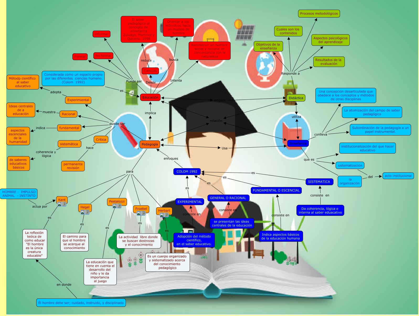 Este Cmap, tiene información relacionada con: Educación, pedagogía, enseñanza y didáctica, Pedagogía para Hegel, Educación Puede ser Informal, Él hombre debe ser; cuidado, instruido, y disciplinado en donde La reflexión teóica de como educar "El hombre es la única creatura educable", Enseñanza que es sistematización, Educación Intenta Reconstruir un hombre social y racional en concordancia con la naturaleza, Didáctica utiliza Enseñanza, Pedagogía puede ser Experimiental, Didáctica Responde a Resultados de la evaluación, Pedagogía relación Didáctica, Enseñanza que es institucionalización del que hacer educativo, Considerada como un espacio propio por las diferentes ciencias humano. (Colom 1992) es Educación, Pedagogía para Pestalozzi, Pedagogía para Froebel, Pedagogía para Kant, Enseñanza conlleva Una concepción desarticulada que obedece a los conceptos y métodos de otras disciplinas, COLOM 1992 enfoques Pedagogía, Pedagogía puede ser Racional, Pedagogía Usa Enseñanza, Educación Puede ser Formal, Pedagogía para Herbart