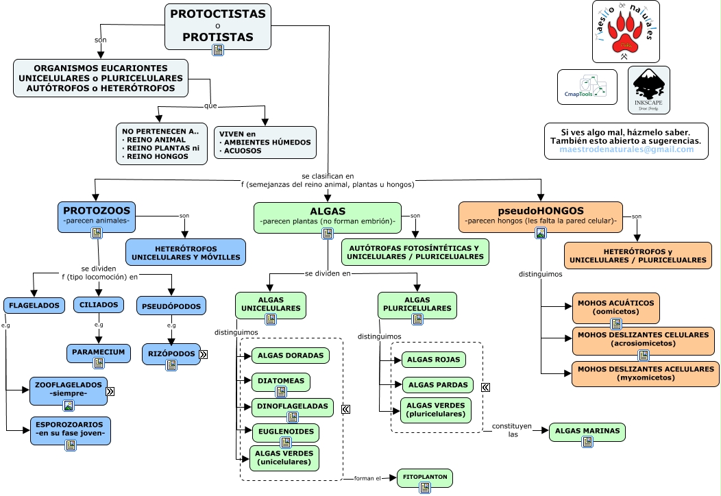 Este Cmap, tiene información relacionada con: Tema 14.6 Protoctistas, ALGAS UNICELULARES distinguimos ALGAS DORADAS, ALGAS UNICELULARES distinguimos EUGLENOIDES, ALGAS UNICELULARES distinguimos DIATOMEAS, ALGAS UNICELULARES distinguimos DINOFLAGELADAS, ORGANISMOS EUCARIONTES UNICELULARES o PLURICELULARES AUTÓTROFOS o HETERÓTROFOS que VIVEN en · AMBIENTES HÚMEDOS · ACUOSOS, 1 flagelo e.g Leishmania, PROTOZOOS -parecen animales- se dividen f (tipo locomoción) en CILIADOS, CILIADOS e.g PARAMECIUM, ZOOFLAGELADOS posee 8 flagelos, FLAGELADOS e.g ZOOFLAGELADOS -siempre-, PROTOZOOS -parecen animales- se dividen f (tipo locomoción) en FLAGELADOS, PROTOCTISTAS o PROTISTAS se clasifican en f (semejanzas del reino animal, plantas u hongos) PROTOZOOS -parecen animales-, PROTOCTISTAS o PROTISTAS se clasifican en f (semejanzas del reino animal, plantas u hongos) pseudoHONGOS -parecen hongos (les falta la pared celular)-, pseudoHONGOS -parecen hongos (les falta la pared celular)- son HETERÓTROFOS y UNICELULARES / PLURICELUALRES, ALGAS -parecen plantas (no forman embrión)- se dividen en ALGAS PLURICELULARES, ZOOFLAGELADOS posee 1 flagelo, ???? forman el FITOPLANTON, FLAGELADOS e.g ESPOROZOARIOS -en su fase joven-, PSEUDÓPODOS e.g RADIOLARIOS, ALGAS PLURICELULARES distinguimos ALGAS VERDES (pluricelulares)