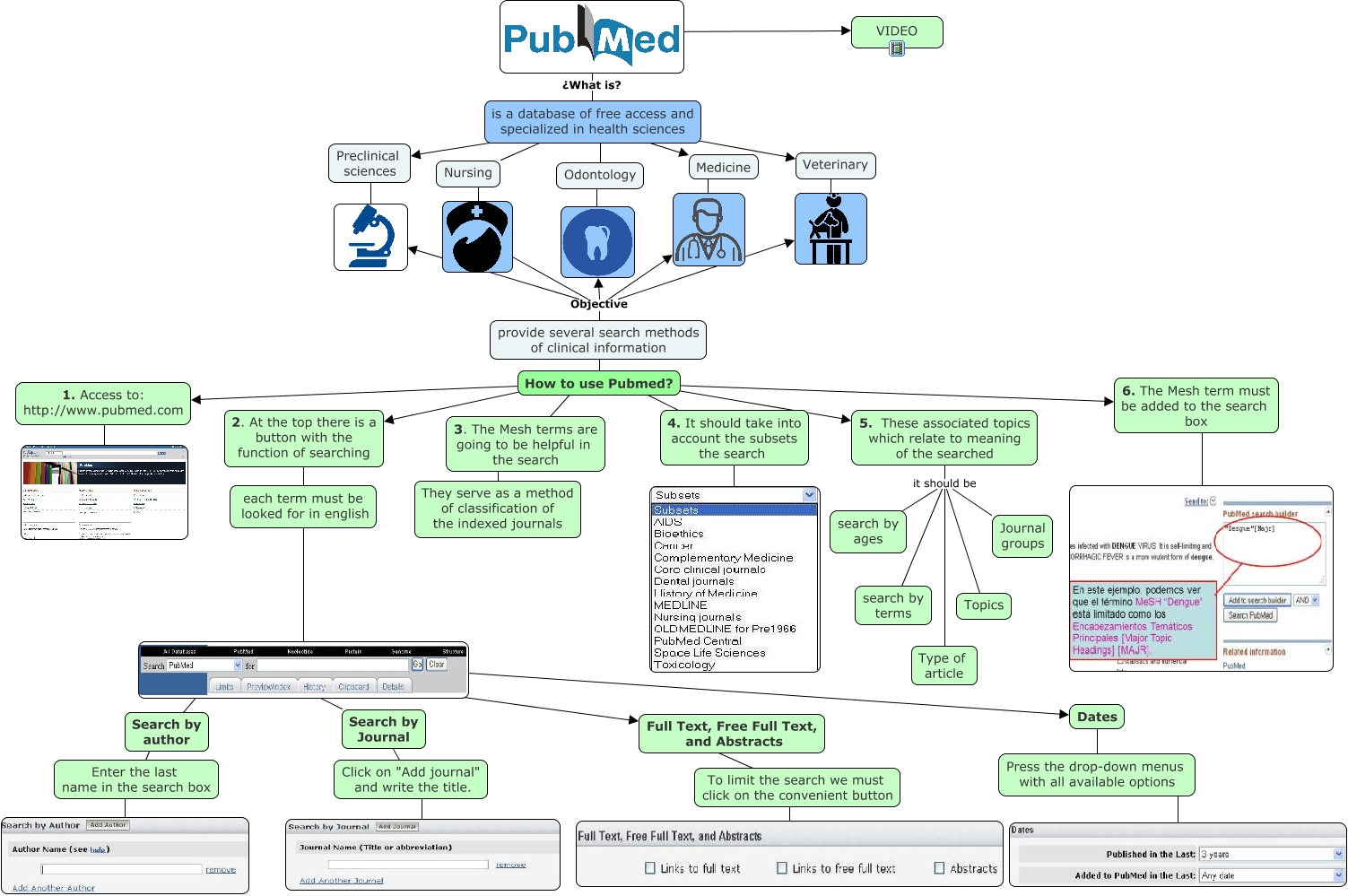 Este Cmap, tiene información relacionada con: MAPA PUBMED, Medicine ????, provide several search methods of clinical information ???? How to use Pubmed?, 3. The Mesh terms are going to be helpful in the search ???? They serve as a method of classification of the indexed journals, Objective, How to use Pubmed? ???? 4. It should take into account the subsets the search, is a database of free access and specialized in health sciences ???? Nursing, ???? Dates, Odontology ????, To limit the search we must click on the convenient button ????, Dates ???? Press the drop-down menus with all available options, Objective provide several search methods of clinical information, 5. These associated topics which relate to meaning of the searched it should be Type of article, 4. It should take into account the subsets the search ????, Preclinical sciences ????, ???? Search by author, Search by Journal ???? Click on "Add journal" and write the title., Full Text, Free Full Text, and Abstracts ???? To limit the search we must click on the convenient button, 5. These associated topics which relate to meaning of the searched it should be search by ages, each term must be looked for in english ????, Click on "Add journal" and write the title. ????