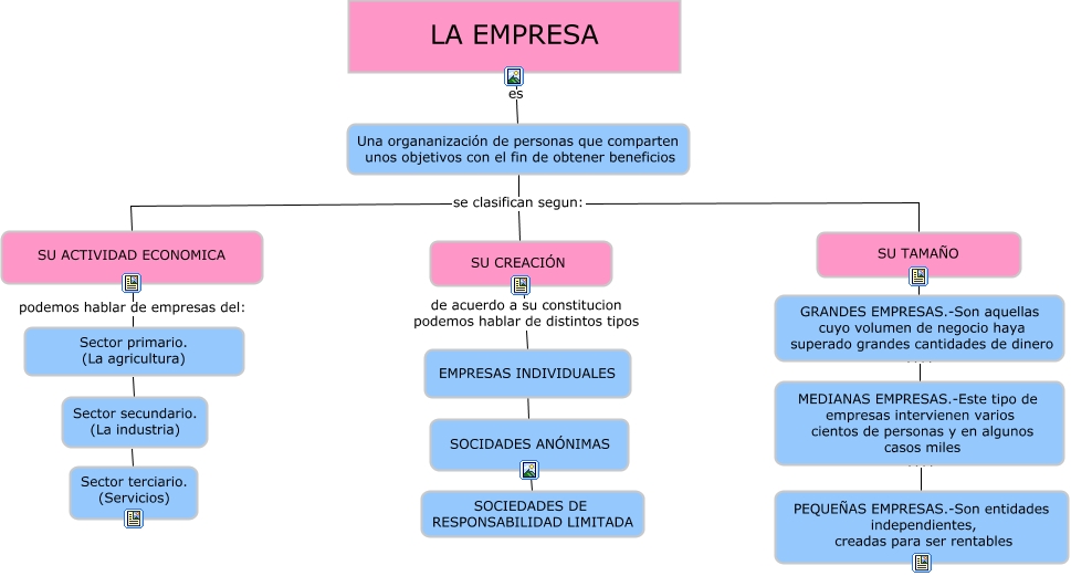 Este Cmap, tiene información relacionada con: empresa, Sector primario. (La agricultura) ???? Sector secundario. (La industria), SU TAMAÑO ???? GRANDES EMPRESAS.-Son aquellas cuyo volumen de negocio haya superado grandes cantidades de dinero, SU CREACIÓN de acuerdo a su constitucion podemos hablar de distintos tipos EMPRESAS INDIVIDUALES, MEDIANAS EMPRESAS.-Este tipo de empresas intervienen varios cientos de personas y en algunos casos miles ???? PEQUEÑAS EMPRESAS.-Son entidades independientes, creadas para ser rentables, SU ACTIVIDAD ECONOMICA podemos hablar de empresas del: Sector primario. (La agricultura), SOCIDADES ANÓNIMAS ???? SOCIEDADES DE RESPONSABILIDAD LIMITADA, Una organanización de personas que comparten unos objetivos con el fin de obtener beneficios se clasifican segun: SU ACTIVIDAD ECONOMICA, Una organanización de personas que comparten unos objetivos con el fin de obtener beneficios se clasifican segun: SU CREACIÓN, EMPRESAS INDIVIDUALES ???? SOCIDADES ANÓNIMAS, GRANDES EMPRESAS.-Son aquellas cuyo volumen de negocio haya superado grandes cantidades de dinero ???? MEDIANAS EMPRESAS.-Este tipo de empresas intervienen varios cientos de personas y en algunos casos miles, LA EMPRESA es Una organanización de personas que comparten unos objetivos con el fin de obtener beneficios, Una organanización de personas que comparten unos objetivos con el fin de obtener beneficios se clasifican segun: SU TAMAÑO, Sector secundario. (La industria) ???? Sector terciario. (Servicios)