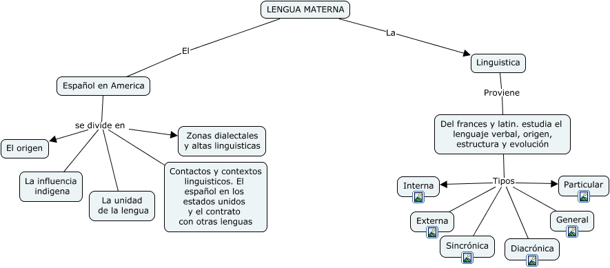 Este Cmap, tiene información relacionada con: Mapa conceptual de lengua materna, Del frances y latin. estudia el lenguaje verbal, origen, estructura y evolución Tipos Interna, Español en America se divide en La unidad de la lengua, Español en America se divide en Contactos y contextos linguisticos. El español en los estados unidos y el contrato con otras lenguas, Del frances y latin. estudia el lenguaje verbal, origen, estructura y evolución Tipos Diacrónica, Del frances y latin. estudia el lenguaje verbal, origen, estructura y evolución Tipos Externa, LENGUA MATERNA El Español en America, Del frances y latin. estudia el lenguaje verbal, origen, estructura y evolución Tipos General, Español en America se divide en Zonas dialectales y altas linguisticas, Del frances y latin. estudia el lenguaje verbal, origen, estructura y evolución Tipos Sincrónica, Linguistica Proviene Del frances y latin. estudia el lenguaje verbal, origen, estructura y evolución, Español en America se divide en La influencia indigena, LENGUA MATERNA La Linguistica, Español en America se divide en El origen, Del frances y latin. estudia el lenguaje verbal, origen, estructura y evolución Tipos Particular