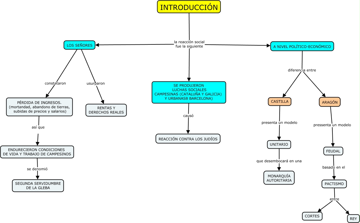 Este Cmap, tiene información relacionada con: INTRODUCCIÓN 2 ENCARNI, PÉRDIDA DE INGRESOS. (mortandad, abandono de tierras, subidas de precios y salarios) así que ENDURECIERON CONDICIONES DE VIDA Y TRABAJO DE CAMPESINOS, ARAGÓN pressenta un modelo FEUDAL, A NIVEL POLÍTICO-ECONÓMICO diferencia entre ARAGÓN, PACTISMO entre REY, FEUDAL basado en el PACTISMO, SE PRODUJERON LUCHAS SOCIALES CAMPESINAS (CATALUÑA Y GALICIA) Y URBANAS8 BARCELONA) causó REACCIÓN CONTRA LOS JUDÍOS, INTRODUCCIÓN la reacción social fue la siguiente SE PRODUJERON LUCHAS SOCIALES CAMPESINAS (CATALUÑA Y GALICIA) Y URBANAS8 BARCELONA), CASTILLA presenta un modelo UNITARIO, PACTISMO entre CORTES, UNITARIO que desembocará en una MONARQUÍA AUTORITARIA, INTRODUCCIÓN la reacción social fue la siguiente A NIVEL POLÍTICO-ECONÓMICO, LOS SEÑORES constataron PÉRDIDA DE INGRESOS. (mortandad, abandono de tierras, subidas de precios y salarios), A NIVEL POLÍTICO-ECONÓMICO diferencia entre CASTILLA, INTRODUCCIÓN la reacción social fue la siguiente LOS SEÑORES, ENDURECIERON CONDICIONES DE VIDA Y TRABAJO DE CAMPESINOS se denomió SEGUNDA SERVIDUMBRE DE LA GLEBA, LOS SEÑORES usurparon RENTAS Y DERECHOS REALES