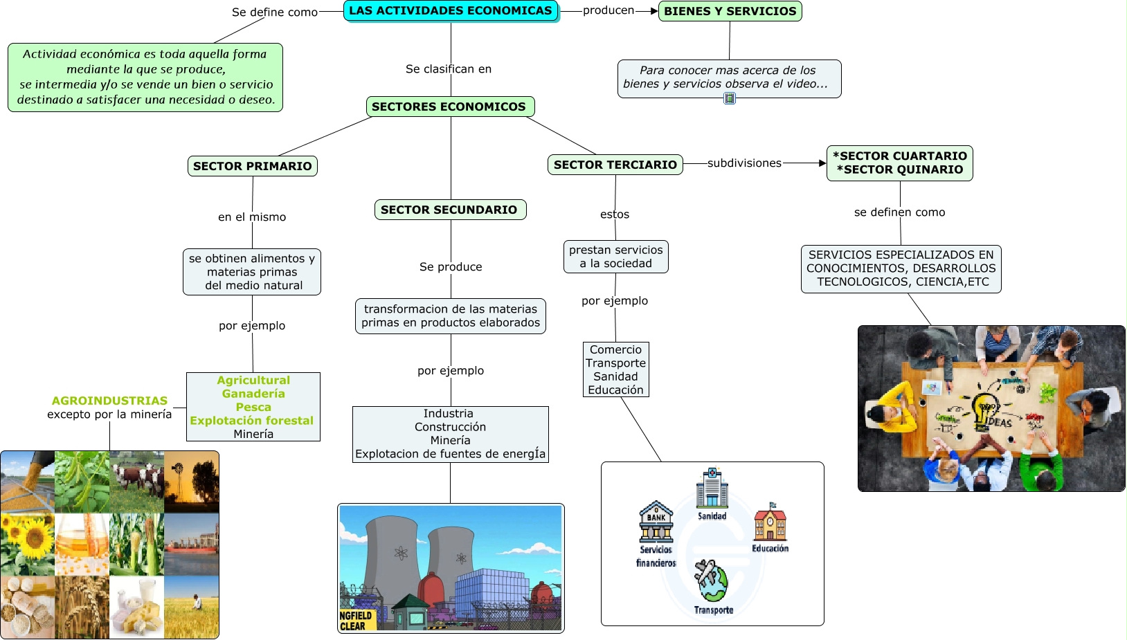 Este Cmap, tiene información relacionada con: ACTIVIDADES ECONOMICAS - GEOGRAFIA, se obtinen alimentos y materias primas del medio natural por ejemplo Agricultural Ganadería Pesca Explotación forestal Minería, LAS ACTIVIDADES ECONOMICAS Se define como Actividad económica es toda aquella forma mediante la que se produce, se intermedia y/o se vende un bien o servicio destinado a satisfacer una necesidad o deseo., SECTOR PRIMARIO en el mismo se obtinen alimentos y materias primas del medio natural, LAS ACTIVIDADES ECONOMICAS Se clasifican en SECTORES ECONOMICOS, transformacion de las materias primas en productos elaborados por ejemplo Industria Construcción Minería Explotacion de fuentes de energÍa, Agricultural Ganadería Pesca Explotación forestal Minería AGROINDUSTRIAS excepto por la minería, SECTOR TERCIARIO estos prestan servicios a la sociedad, LAS ACTIVIDADES ECONOMICAS producen BIENES Y SERVICIOS, Comercio Transporte Sanidad Educación ????, SECTORES ECONOMICOS ???? SECTOR TERCIARIO, SECTOR SECUNDARIO Se produce transformacion de las materias primas en productos elaborados, SECTORES ECONOMICOS ???? SECTOR PRIMARIO, SECTOR TERCIARIO subdivisiones *SECTOR CUARTARIO *SECTOR QUINARIO, *SECTOR CUARTARIO *SECTOR QUINARIO se definen como SERVICIOS ESPECIALIZADOS EN CONOCIMIENTOS, DESARROLLOS TECNOLOGICOS, CIENCIA,ETC, BIENES Y SERVICIOS ???? Para conocer mas acerca de los bienes y servicios observa el video..., Industria Construcción Minería Explotacion de fuentes de energÍa ????, SERVICIOS ESPECIALIZADOS EN CONOCIMIENTOS, DESARROLLOS TECNOLOGICOS, CIENCIA,ETC ???? ????, SECTORES ECONOMICOS ???? SECTOR SECUNDARIO, prestan servicios a la sociedad por ejemplo Comercio Transporte Sanidad Educación
