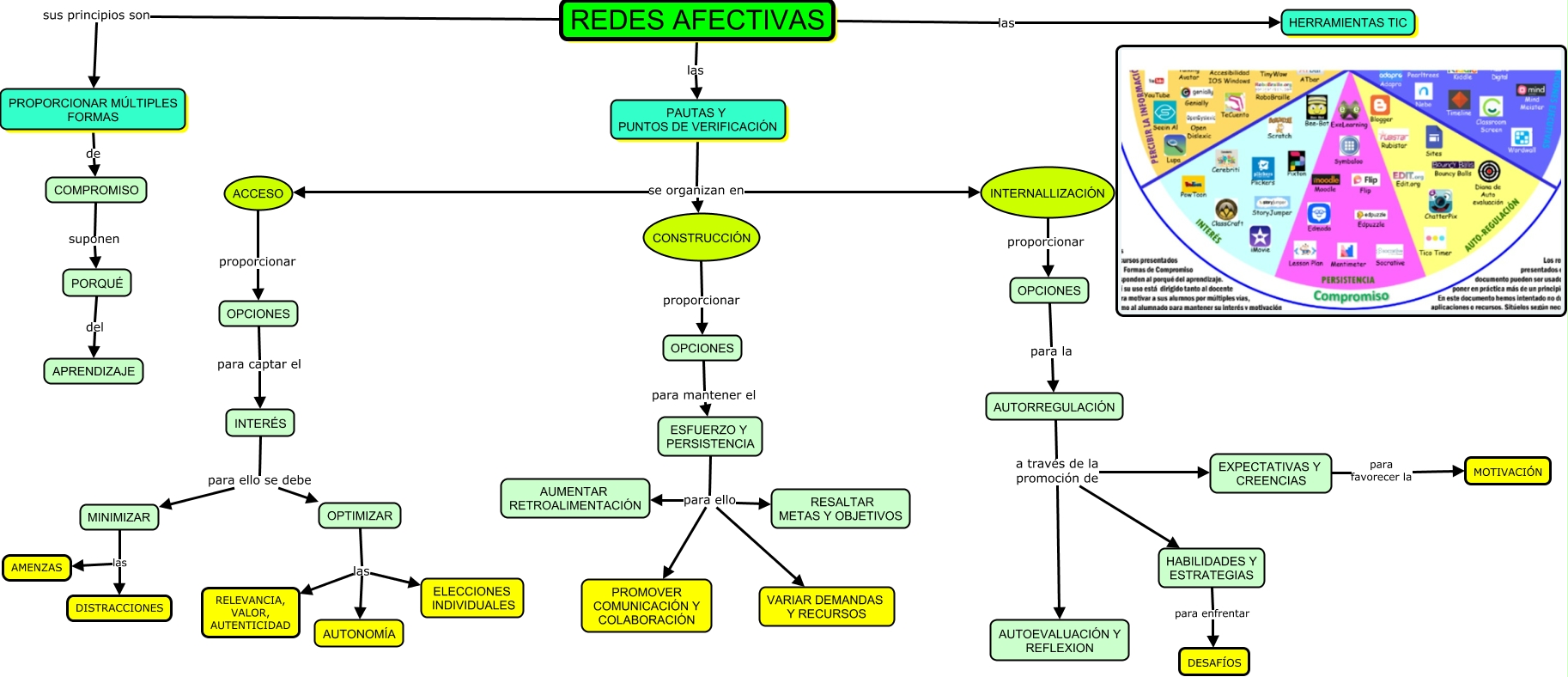 Este Cmap, tiene información relacionada con: REDES AFECTIVAS, PORQUÉ del APRENDIZAJE, REDES AFECTIVAS las PAUTAS Y PUNTOS DE VERIFICACIÓN, PAUTAS Y PUNTOS DE VERIFICACIÓN se organizan en ACCESO, EXPECTATIVAS Y CREENCIAS para favorecer la MOTIVACIÓN, INTERÉS para ello se debe MINIMIZAR, HABILIDADES Y ESTRATEGIAS para enfrentar DESAFÍOS, ESFUERZO Y PERSISTENCIA para ello PROMOVER COMUNICACIÓN Y COLABORACIÓN, MINIMIZAR las DISTRACCIONES, OPTIMIZAR las RELEVANCIA, VALOR, AUTENTICIDAD, OPCIONES para mantener el ESFUERZO Y PERSISTENCIA, ESFUERZO Y PERSISTENCIA para ello RESALTAR METAS Y OBJETIVOS, OPTIMIZAR las ELECCIONES INDIVIDUALES, CONSTRUCCIÓN proporcionar OPCIONES, OPTIMIZAR las AUTONOMÍA, AUTORREGULACIÓN a través de la promoción de EXPECTATIVAS Y CREENCIAS, OPCIONES para captar el INTERÉS, COMPROMISO suponen PORQUÉ, ESFUERZO Y PERSISTENCIA para ello VARIAR DEMANDAS Y RECURSOS, ACCESO proporcionar OPCIONES, AUTORREGULACIÓN a través de la promoción de AUTOEVALUACIÓN Y REFLEXION