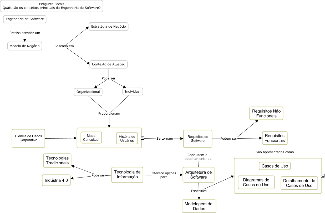 Esse mapa conceitual, produzido no IHMC CmapTools, tem a informação relacionada a: Estacionamento 3, Requisitos Funcionais São apresentados como Casos de Uso, Requisitos de Software Conduzem o detalhamento de Arquitetura de Software, Requisitos de Software Podem ser Requisitos Não Funcionais, Contexto de Atuação Pode ser Individual, Arquitetura de Software Especifica Modelagem de Dados, ???? Se tornam Requisitos de Software, Arquitetura de Software Especifica ????, Contexto de Atuação Pode ser Organizacional, Individual Proporcionam ????, Ciência de Dados Corporativo ????, Requisitos de Software Podem ser Requisitos Funcionais, Tecnologia da Informação Pode ser Indústria 4.0, Tecnologia da Informação Pode ser Tecnologias Tradicionais, Modelo de Negócio Baseado em Estratégia de Negócio, Modelo de Negócio Baseado em Contexto de Atuação, Tecnologia da Informação Oferece opções para Arquitetura de Software, Engenharia de Software Precisa atender um Modelo de Negócio, Individual Proporcionam Organizacional