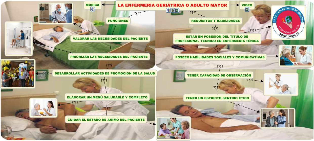 Este Cmap, tiene información relacionada con: TRABAJO PRACTICO, LA ENFERMERÍA GERIÁTRICA O ADULTO MAYOR ???? FUNCIONES, ESTAR EN POSESION DEL TITULO DE PROFESIONAL TÉCNICO EN ENFERMERIA TÉNICA ????, TENER UN ESTRICTO SENTIDO ÉTICO ????, POSEER HABILIDADES SOCIALES Y COMUNICATIVAS ????, PRIORIZAR LAS NECESIDADES DEL PACIENTE ????, TENER CAPACIDAD DE OBSERVACIÓN ???? TENER UN ESTRICTO SENTIDO ÉTICO, LA ENFERMERÍA GERIÁTRICA O ADULTO MAYOR ???? MÚSICA, LA ENFERMERÍA GERIÁTRICA O ADULTO MAYOR ???? REQUISITOS Y HABILIDADES, FUNCIONES ???? VALORAR LAS NECESIDADES DEL PACIENTE, ELABORAR UN MENÚ SALUDABLE Y COMPLETO ????, VALORAR LAS NECESIDADES DEL PACIENTE ???? PRIORIZAR LAS NECESIDADES DEL PACIENTE, DESARROLLAR ACTIVIDADES DE PROMOCION DE LA SALUD ???? ELABORAR UN MENÚ SALUDABLE Y COMPLETO, PRIORIZAR LAS NECESIDADES DEL PACIENTE ???? DESARROLLAR ACTIVIDADES DE PROMOCION DE LA SALUD, ESTAR EN POSESION DEL TITULO DE PROFESIONAL TÉCNICO EN ENFERMERIA TÉNICA ???? POSEER HABILIDADES SOCIALES Y COMUNICATIVAS, CUIDAR EL ESTADO DE ÁNIMO DEL PACIENTE ????, TENER CAPACIDAD DE OBSERVACIÓN ????, DESARROLLAR ACTIVIDADES DE PROMOCION DE LA SALUD ????, ELABORAR UN MENÚ SALUDABLE Y COMPLETO ???? CUIDAR EL ESTADO DE ÁNIMO DEL PACIENTE, LA ENFERMERÍA GERIÁTRICA O ADULTO MAYOR ???? VIDEO, POSEER HABILIDADES SOCIALES Y COMUNICATIVAS ???? TENER CAPACIDAD DE OBSERVACIÓN