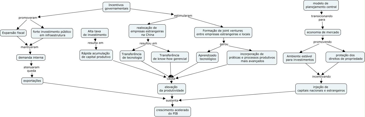Esse mapa conceitual, produzido no IHMC CmapTools, tem a informação relacionada a: 1.4 - Motores do Crescimento Chinês - Investimentos e Transferência Tecnológica