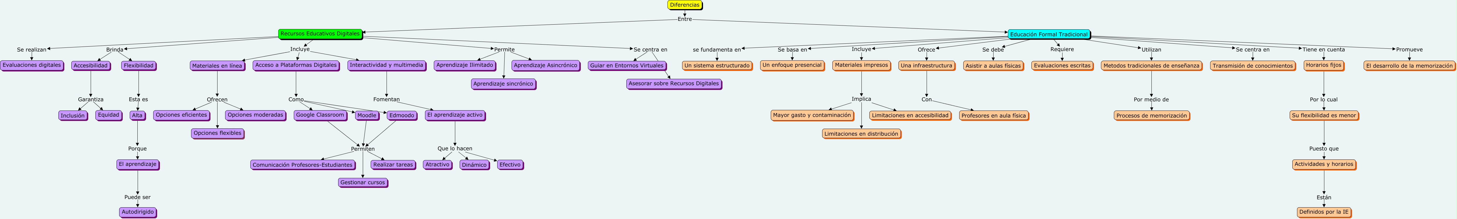 Este Cmap, tiene información relacionada con: Mapa conceptual, Alta Porque El aprendizaje, Recursos Educativos Digitales Incluye Materiales en línea, Materiales en línea Ofrecen Opciones flexibles, Moodle Permiten Realizar tareas, Educación Formal Tradicional se fundamenta en Un sistema estructurado, Recursos Educativos Digitales Se centra en Guiar en Entornos Virtuales, Actividades y horarios Están Definidos por la IE, El aprendizaje activo Que lo hacen Efectivo, Acceso a Plataformas Digitales Como Edmoodo, Edmoodo Permiten Realizar tareas, Materiales impresos Implica Limitaciones en distribución, Recursos Educativos Digitales Brinda Accesibilidad, Horarios fijos Por lo cual Su flexibilidad es menor, Acceso a Plataformas Digitales Como Moodle, Recursos Educativos Digitales Permite Aprendizaje sincrónico, Moodle Permiten Comunicación Profesores-Estudiantes, Recursos Educativos Digitales Permite Aprendizaje Asincrónico, Educación Formal Tradicional Promueve El desarrollo de la memorización, Materiales impresos Implica Mayor gasto y contaminación, Google Classroom Permiten Comunicación Profesores-Estudiantes