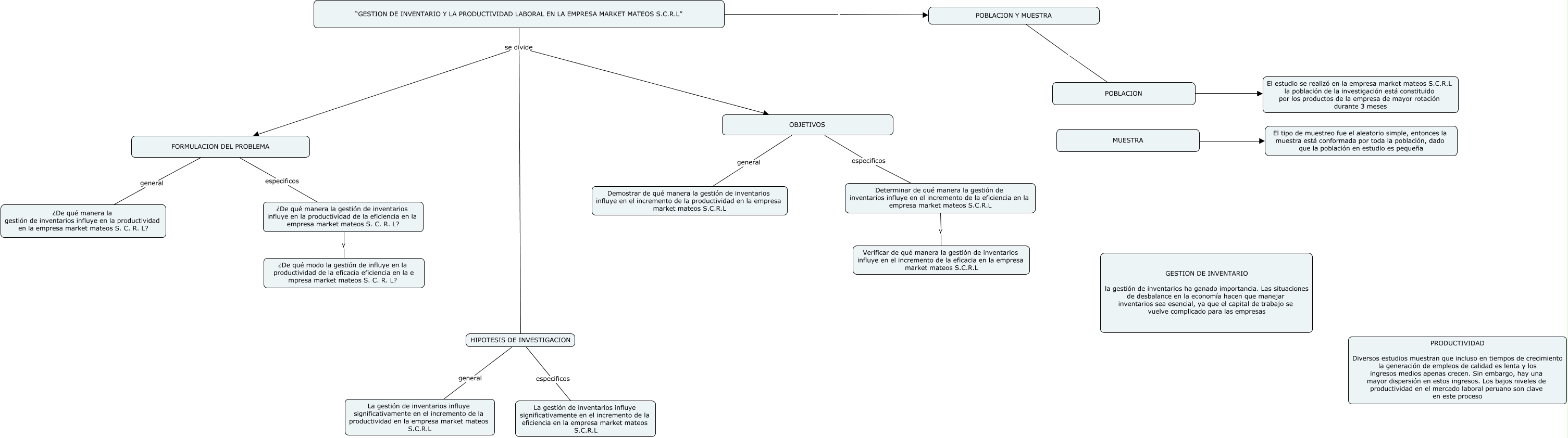 Este Cmap, tiene información relacionada con: AAAGUSTAVO25, POBLACION ???? El estudio se realizó en la empresa market mateos S.C.R.L la población de la investigación está constituido por los productos de la empresa de mayor rotación durante 3 meses, HIPOTESIS DE INVESTIGACION especificos La gestión de inventarios influye significativamente en el incremento de la eficiencia en la empresa market mateos S.C.R.L, “GESTION DE INVENTARIO Y LA PRODUCTIVIDAD LABORAL EN LA EMPRESA MARKET MATEOS S.C.R.L” POBLACION Y MUESTRA, OBJETIVOS general Demostrar de qué manera la gestión de inventarios influye en el incremento de la productividad en la empresa market mateos S.C.R.L, POBLACION Y MUESTRA POBLACION, FORMULACION DEL PROBLEMA especificos ¿De qué manera la gestión de inventarios influye en la productividad de la eficiencia en la empresa market mateos S. C. R. L?, “GESTION DE INVENTARIO Y LA PRODUCTIVIDAD LABORAL EN LA EMPRESA MARKET MATEOS S.C.R.L” se divide OBJETIVOS, Determinar de qué manera la gestión de inventarios influye en el incremento de la eficiencia en la empresa market mateos S.C.R.L y Verificar de qué manera la gestión de inventarios influye en el incremento de la eficacia en la empresa market mateos S.C.R.L, HIPOTESIS DE INVESTIGACION general La gestión de inventarios influye significativamente en el incremento de la productividad en la empresa market mateos S.C.R.L, “GESTION DE INVENTARIO Y LA PRODUCTIVIDAD LABORAL EN LA EMPRESA MARKET MATEOS S.C.R.L” se divide FORMULACION DEL PROBLEMA, ¿De qué manera la gestión de inventarios influye en la productividad de la eficiencia en la empresa market mateos S. C. R. L? y ¿De qué modo la gestión de influye en la productividad de la eficacia eficiencia en la e mpresa market mateos S. C. R. L?, OBJETIVOS especificos Determinar de qué manera la gestión de inventarios influye en el incremento de la eficiencia en la empresa market mateos S.C.R.L, “GESTION DE INVENTARIO Y LA PRODUCTIVIDAD LABORAL EN LA EMPRESA MARKET MATEOS S.C.R.L” se divide HIPOTESIS DE INVESTIGACION, MUESTRA ???? El tipo de muestreo fue el aleatorio simple, entonces la muestra está conformada por toda la población, dado que la población en estudio es pequeña, FORMULACION DEL PROBLEMA general ¿De qué manera la gestión de inventarios influye en la productividad en la empresa market mateos S. C. R. L?