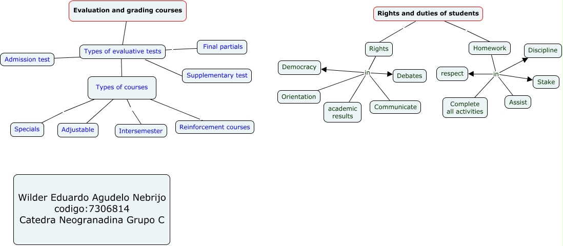 Este Cmap, tiene información relacionada con: mapa conceptual, Rights in academic results, Homework in Assist, Rights in Debates, Types of evaluative tests Supplementary test, Rights and duties of students Rights, Homework in Discipline, Types of courses Adjustable, Types of courses Intersemester, Homework in Stake, Evaluation and grading courses Types of courses, Types of evaluative tests Admission test, Rights in Orientation, Homework in respect, Types of evaluative tests Final partials, Rights and duties of students Homework, Rights in Communicate, Types of courses Reinforcement courses, Homework in Complete all activities, Rights in Democracy, Types of courses Specials
