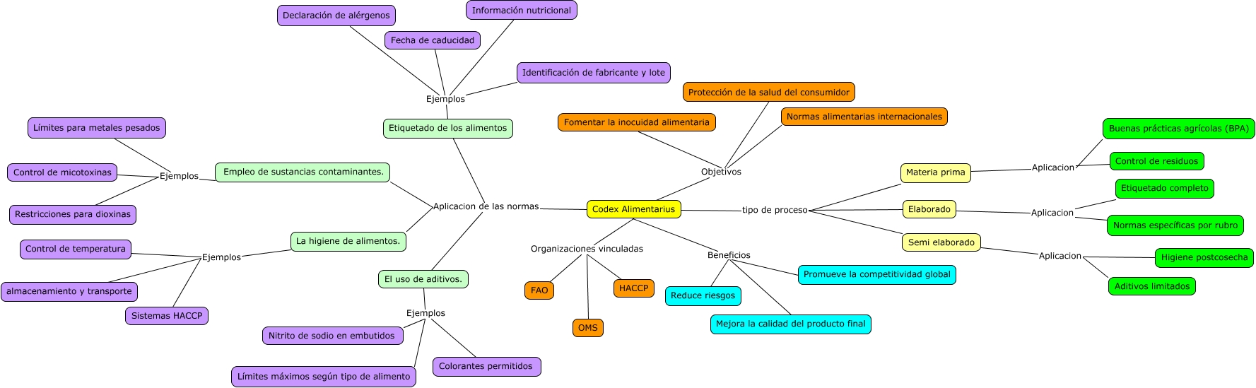 Este Cmap, tiene información relacionada con: Codex de Kenneth, Higiene postcosecha Aplicacion Semi elaborado, Empleo de sustancias contaminantes. Aplicacion de las normas Codex Alimentarius, Etiquetado de los alimentos Ejemplos Fecha de caducidad, Nitrito de sodio en embutidos Ejemplos El uso de aditivos., Control de micotoxinas Ejemplos Empleo de sustancias contaminantes., Etiquetado de los alimentos Ejemplos Identificación de fabricante y lote, Mejora la calidad del producto final Beneficios Codex Alimentarius, Codex Alimentarius tipo de proceso Elaborado, FAO Organizaciones vinculadas Codex Alimentarius, Límites para metales pesados Ejemplos Empleo de sustancias contaminantes., Codex Alimentarius Objetivos Protección de la salud del consumidor, La higiene de alimentos. Aplicacion de las normas Codex Alimentarius, Codex Alimentarius Objetivos Normas alimentarias internacionales, Etiquetado completo Aplicacion Elaborado, Etiquetado de los alimentos Ejemplos Información nutricional, Normas específicas por rubro Aplicacion Elaborado, Promueve la competitividad global Beneficios Codex Alimentarius, HACCP Organizaciones vinculadas Codex Alimentarius, Reduce riesgos Beneficios Codex Alimentarius, Restricciones para dioxinas Ejemplos Empleo de sustancias contaminantes.