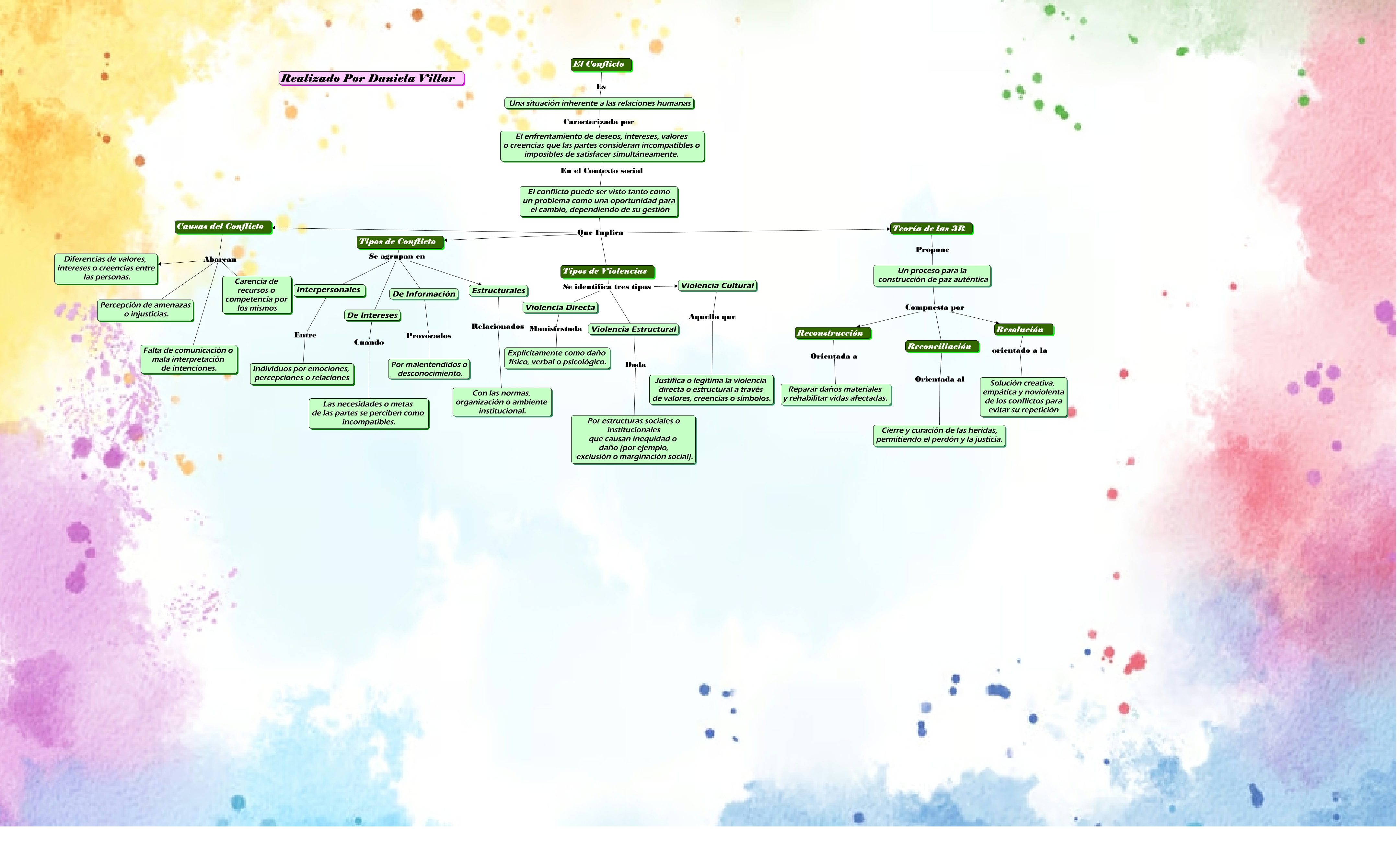 Este Cmap, tiene información relacionada con: El Conficto, El conflicto puede ser visto tanto como un problema como una oportunidad para el cambio, dependiendo de su gestión Que Inplica Tipos de Conflicto, Un proceso para la construcción de paz auténtica Compuesta por Reconstrucción, Causas del Conflicto Abarcan Falta de comunicación o mala interpretación de intenciones., Causas del Conflicto Abarcan Diferencias de valores, intereses o creencias entre las personas., Reconciliación Orientada al Cierre y curación de las heridas, permitiendo el perdón y la justicia., De Intereses Cuando Las necesidades o metas de las partes se perciben como incompatibles., De Información Provocados Por malentendidos o desconocimiento., Tipos de Conflicto Se agrupan en Estructurales, Causas del Conflicto Abarcan Percepción de amenazas o injusticias., Causas del Conflicto Abarcan Carencia de recursos o competencia por los mismos, Tipos de Violencias Se identifica tres tipos Violencia Directa, Una situación inherente a las relaciones humanas Caracterizada por El enfrentamiento de deseos, intereses, valores o creencias que las partes consideran incompatibles o imposibles de satisfacer simultáneamente., El conflicto puede ser visto tanto como un problema como una oportunidad para el cambio, dependiendo de su gestión Que Inplica Teoría de las 3R, Teoría de las 3R Propone Un proceso para la construcción de paz auténtica, Tipos de Conflicto Se agrupan en Interpersonales, Violencia Cultural Aquella que Justifica o legitima la violencia directa o estructural a través de valores, creencias o símbolos., Un proceso para la construcción de paz auténtica Compuesta por Resolución, Resolución orientado a la Solución creativa, empática y noviolenta de los conflictos para evitar su repetición, Reconstrucción Orientada a Reparar daños materiales y rehabilitar vidas afectadas., El conflicto puede ser visto tanto como un problema como una oportunidad para el cambio, dependiendo de su gestión Que Inplica Tipos de Violencias