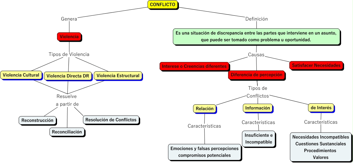 Este Cmap, tiene información relacionada con: TAREA 1 RECONOCIMIENTO TEORICO DEL CONFLICTO, Diferencia de percepción Tipos de Conflictos Información, Violencia Tipos de Violencia Violencia Estructural, Diferencia de percepción Tipos de Conflictos Información, Violencia Cultural Resuelve a partir de Resolución de Conflictos, Diferencia de percepción Tipos de Conflictos de Interés, Violencia Cultural Resuelve a partir de Reconciliación, Violencia Tipos de Violencia Violencia Directa DR, de Interés Características Necesidades Incompatibles Cuestiones Sustanciales Procedimientos Valores, Violencia Directa DR Resuelve a partir de Reconstrucción, Violencia Cultural Resuelve a partir de Reconstrucción, Es una situación de discrepancia entre las partes que interviene en un asunto, que puede ser tomado como problema u oportunidad. Causas Interese o Creencias diferentes, Violencia Tipos de Violencia Violencia Cultural, Violencia Estructural Resuelve a partir de Reconciliación, CONFLICTO Definición Es una situación de discrepancia entre las partes que interviene en un asunto, que puede ser tomado como problema u oportunidad., Diferencia de percepción Tipos de Conflictos Relación, Información Características Insuficiente e Incompatible, Violencia Directa DR Resuelve a partir de Resolución de Conflictos, Diferencia de percepción Tipos de Conflictos de Interés, Es una situación de discrepancia entre las partes que interviene en un asunto, que puede ser tomado como problema u oportunidad. Causas Diferencia de percepción, Violencia Estructural Resuelve a partir de Resolución de Conflictos