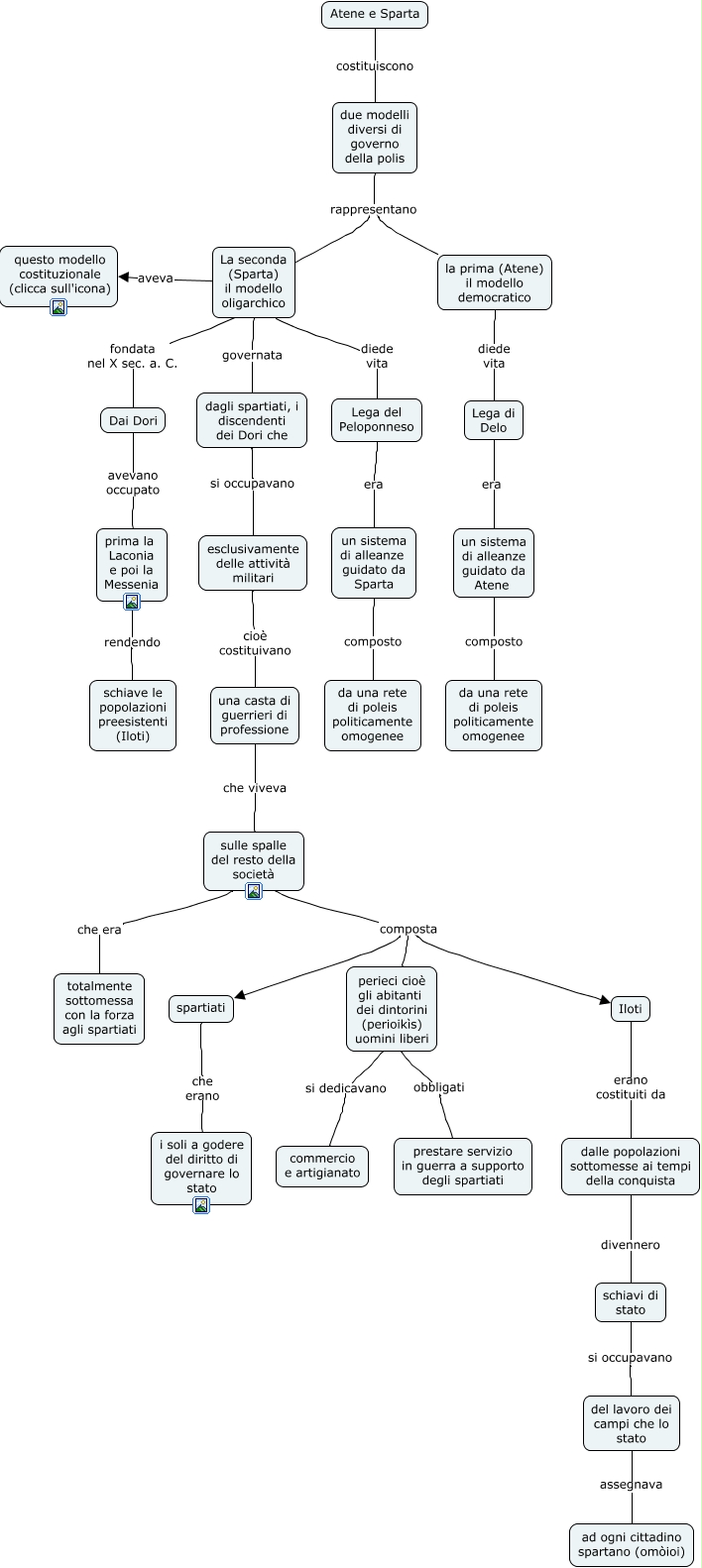 Questa Cmap, creata con IHMC CmapTools, contiene informazioni relative a: Atene e Sparta due modelli alternativi di polis greca primo anno, del lavoro dei campi che lo stato assegnava ad ogni cittadino spartano (omòioi), schiavi di stato si occupavano del lavoro dei campi che lo stato, la prima (Atene) il modello democratico diede vita Lega di Delo, Iloti erano costituiti da dalle popolazioni sottomesse ai tempi della conquista, perieci cioè gli abitanti dei dintorini (perioikìs) uomini liberi obbligati prestare servizio in guerra a supporto degli spartiati, La seconda (Sparta) il modello oligarchico fondata nel X sec. a. C. Dai Dori, prima la Laconia e poi la Messenia rendendo schiave le popolazioni preesistenti (Iloti), una casta di guerrieri di professione che viveva sulle spalle del resto della società, esclusivamente delle attività militari cioè costituivano una casta di guerrieri di professione, Dai Dori avevano occupato prima la Laconia e poi la Messenia, La seconda (Sparta) il modello oligarchico aveva questo modello costituzionale (clicca sull'icona), dalle popolazioni sottomesse ai tempi della conquista divennero schiavi di stato, sulle spalle del resto della società composta spartiati, due modelli diversi di governo della polis rappresentano La seconda (Sparta) il modello oligarchico, dagli spartiati, i discendenti dei Dori che si occupavano esclusivamente delle attività militari, sulle spalle del resto della società composta perieci cioè gli abitanti dei dintorini (perioikìs) uomini liberi, sulle spalle del resto della società che era totalmente sottomessa con la forza agli spartiati, Atene e Sparta costituiscono due modelli diversi di governo della polis, un sistema di alleanze guidato da Sparta composto da una rete di poleis politicamente omogenee, sulle spalle del resto della società composta Iloti