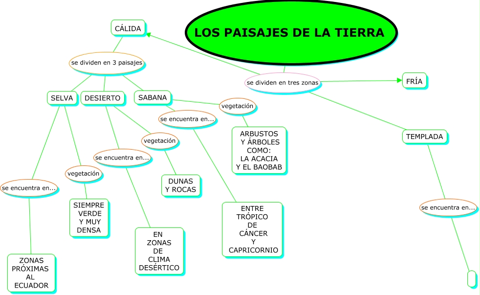 Este Cmap, tiene información relacionada con: LOS PAISAJES DE A & J, DESIERTO vegetación DUNAS Y ROCAS, TEMPLADA se encuentra en..., DESIERTO se encuentra en... EN ZONAS DE CLIMA DESÉRTICO, SABANA vegetación ARBUSTOS Y ÁRBOLES COMO: LA ACACIA Y EL BAOBAB, LOS PAISAJES DE LA TIERRA se dividen en tres zonas FRÍA, LOS PAISAJES DE LA TIERRA se dividen en tres zonas CÁLIDA, CÁLIDA se dividen en 3 paisajes SELVA, SABANA se encuentra en... ENTRE TRÓPICO DE CÁNCER Y CAPRICORNIO, SELVA vegetación SIEMPRE VERDE Y MUY DENSA, SELVA se encuentra en... ZONAS PRÓXIMAS AL ECUADOR, LOS PAISAJES DE LA TIERRA se dividen en tres zonas TEMPLADA, CÁLIDA se dividen en 3 paisajes SABANA, CÁLIDA se dividen en 3 paisajes DESIERTO