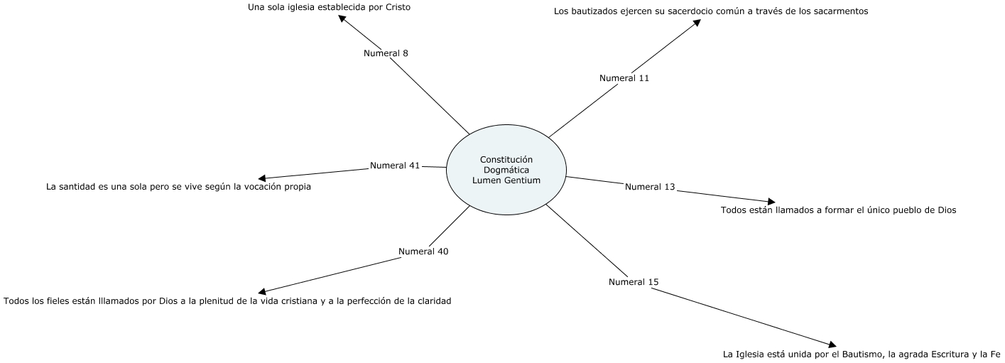 Este Cmap, tiene información relacionada con: Lumen Gentium, Constitución Dogmática Lumen Gentium Numeral 15 La Iglesia está unida por el Bautismo, la agrada Escritura y la Fe, Constitución Dogmática Lumen Gentium Numeral 13 Todos están llamados a formar el único pueblo de Dios, Constitución Dogmática Lumen Gentium Numeral 11 Los bautizados ejercen su sacerdocio común a través de los sacarmentos, Constitución Dogmática Lumen Gentium Numeral 41 La santidad es una sola pero se vive según la vocación propia, Constitución Dogmática Lumen Gentium Numeral 40 Todos los fieles están lllamados por Dios a la plenitud de la vida cristiana y a la perfección de la claridad, Constitución Dogmática Lumen Gentium Numeral 8 Una sola iglesia establecida por Cristo
