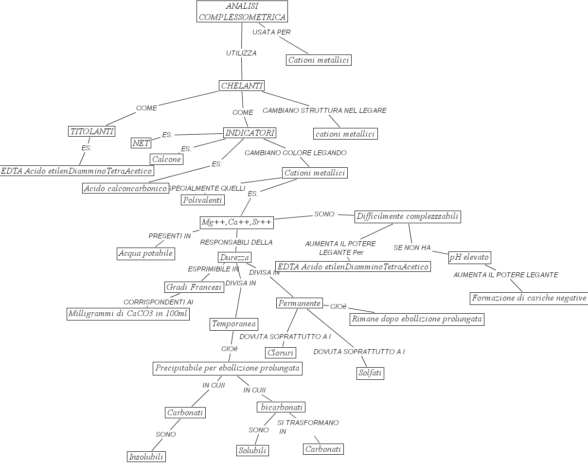 alessia complessometria, chelanti, formazione di cariche negative, net, acido calconcarbonico, acqua potabile, temporanea, precipitabile per ebollizione prolungata, difficilmente complesssabili, gradi francesi, ph elevato, titolanti, carbonati, milligrammi di caco3 in 100ml, polivalenti, rimane dopo ebollizione prolungata, durezza, bicarbonati, edta acido etilendiamminotetraacetico, carbonati, cationi metallici, insolubili, edta acido etilendiamminotetraacetico, calcone, indicatori, cationi metallici, cationi metallici, analisi complessometrica, permanente, solfati, solubili, cloruri, mg ,ca ,sr