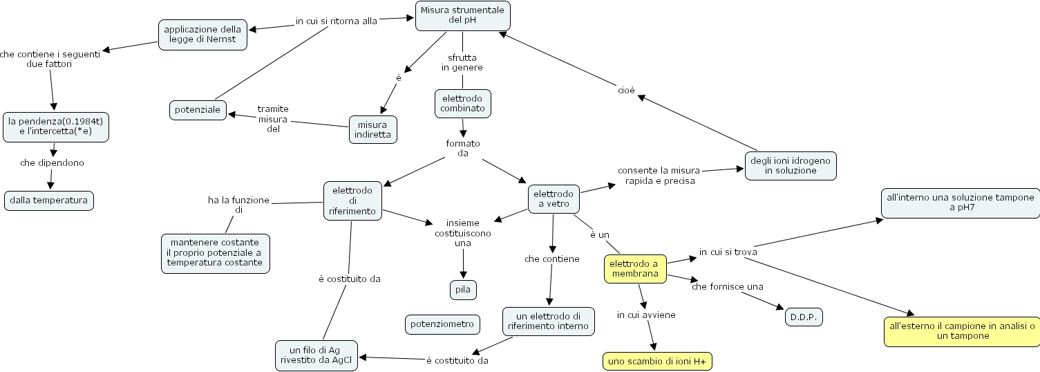 luka misura del ph, degli ioni idrogeno in soluzione, all'interno una soluzione tampone a ph7, uno scambio di ioni h , all'esterno il campione in analisi o un tampone, mantenere costante il proprio potenziale a temperatura costante, elettrodo combinato, applicazione della legge di nernst, un elettrodo di riferimento interno, elettrodo a vetro, un filo di ag rivestito da agcl, d.d.p., potenziale, misura strumentale del ph, misura indiretta, la pendenza(0.1984t) e l'intercetta( e), elettrodo di riferimento, pila, elettrodo a membrana, potenziometro, dalla temperatura