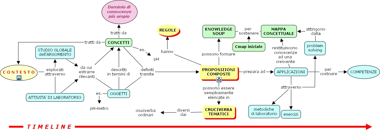 problem solving attingono dalla MAPPA CONCETTUALE, CONCETTI tratti da Dominio di conoscenze pi� ampio, PROPOSIZIONI COMPOSTE possono formare KNOWLEDGE SOUP, STUDIO GLOBALE dell'ARGOMENTO da cui estrarre rilevanti CONCETTI, STUDIO GLOBALE dell'ARGOMENTO da cui estrarre rilevanti OGGETTI, CONCETTI es. pH, C O N T E S T O esplorati attraverso STUDIO GLOBALE dell'ARGOMENTO, C O N T E S T O esplorati attraverso ATTIVITA' DI LABORATORIO, CONCETTI tratti da C O N T E S T O, OGGETTI descritti in termini di CONCETTI, T I M E L I N E , APPLICAZIONI per costruire COMPETENZE, OGGETTI es. pH-metro, KNOWLEDGE SOUP per sostenere MAPPA CONCETTUALE, APPLICAZIONI attraverso problem solving, APPLICAZIONI attraverso metodiche di laboratorio, APPLICAZIONI attraverso esercizi, APPLICAZIONI restituiscono conoscenze ad una crescente MAPPA CONCETTUALE, CONCETTI definiti tramite PROPOSIZIONI COMPOSTE, CRUCIVERBA TEMATICI diversi dai cruciverba ordinari, ATTIVITA' DI LABORATORIO da cui estrarre rilevanti CONCETTI, ATTIVITA' DI LABORATORIO da cui estrarre rilevanti OGGETTI, PROPOSIZIONI COMPOSTE prepara ad APPLICAZIONI, PROPOSIZIONI COMPOSTE hanno REGOLE, Cmap iniziale per sostenere MAPPA CONCETTUALE, PROPOSIZIONI COMPOSTE possono essere semplicemente elencate in CRUCIVERBA TEMATICI, OGGETTI definiti tramite PROPOSIZIONI COMPOSTE