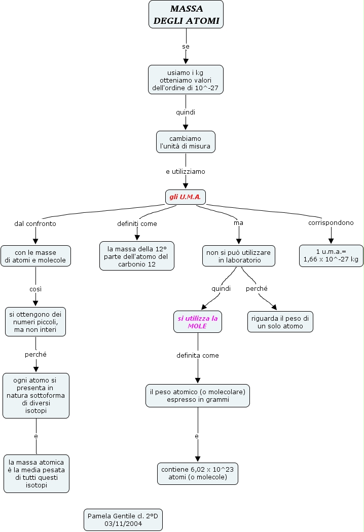 connettivi sincategorematici, usiamo i kg otteniamo valori dell'ordine di 10^-27 quindi cambiamo l'unità di misura, cambiamo l'unità di misura e utilizziamo gli U.M.A., con le masse di atomi e molecole così si ottengono dei numeri piccoli, ma non interi, gli U.M.A. ma non si può utilizzare in laboratorio, si utilizza la MOLE definita come il peso atomico (o molecolare) espresso in grammi, il peso atomico (o molecolare) espresso in grammi e contiene 6,02 x 10^23 atomi (o molecole), gli U.M.A. definiti come la massa della 12° parte dell'atomo del carbonio 12, gli U.M.A. dal confronto con le masse di atomi e molecole, gli U.M.A. corrispondono 1 u.m.a.= 1,66 x 10^-27 kg, MASSA DEGLI ATOMI se usiamo i kg otteniamo valori dell'ordine di 10^-27