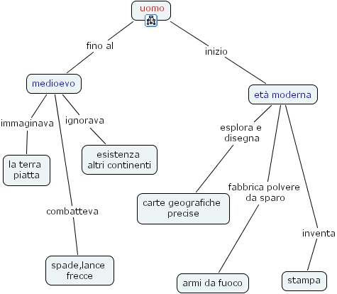 medioevo immaginava la terra piatta, et� moderna fabbrica polvere da sparo armi da fuoco, et� moderna esplora e disegna carte geografiche precise, medioevo combatteva spade,lance frecce, uomo fino al medioevo, uomo inizio et� moderna, et� moderna inventa stampa, medioevo ignorava esistenza altri continenti