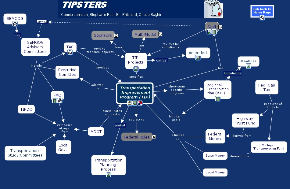 TIP Program, sponsors include FAC, SEMCOG has SEMGOG Advisory Committees, Equity parameter Environmental Justice, Fed. Gas Tax is source of funds for Michigan Transportation Fund, Federal Rules include Air Quality Conformity, Federal Rules include RTP, Staff reviews for compliance TIP Projects, local governments include villages, Staff require strong communication skills, sponsors include MDOT
