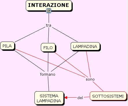 inter_pila, FILO formano SISTEMA LAMPADINA, LAMPADINA formano SISTEMA LAMPADINA, INTERAZIONE tra LAMPADINA, INTERAZIONE tra FILO, FILO sono SOTTOSISTEMI, LAMPADINA sono SOTTOSISTEMI, PILA formano SISTEMA LAMPADINA, SOTTOSISTEMI del SISTEMA LAMPADINA, PILA sono SOTTOSISTEMI, INTERAZIONE tra PILA